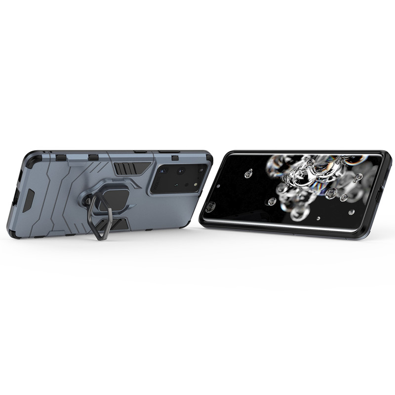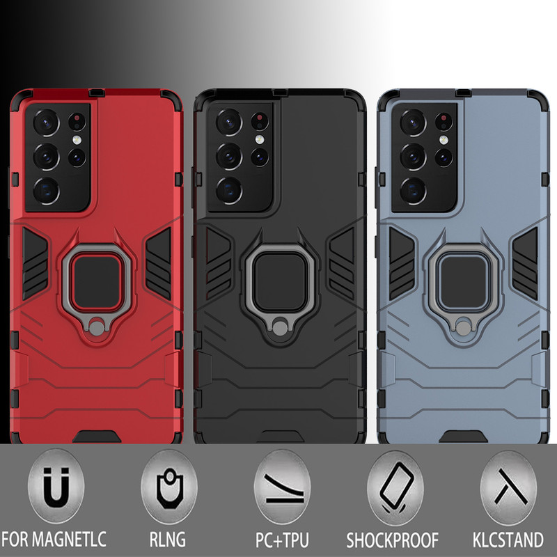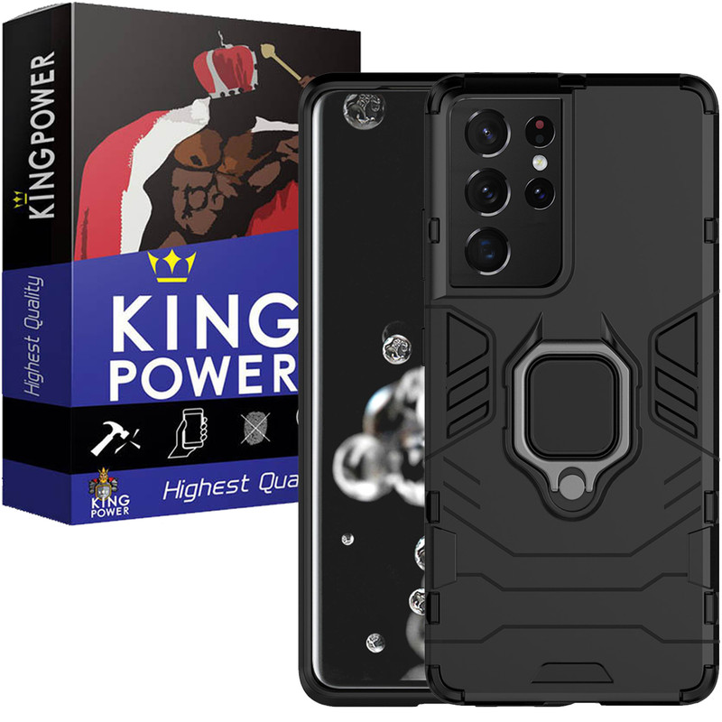 سری قابهای کینگ پاور مدل ASH21 ویژه افرادی با روحیه هیجانی و پر از شور و شعف طراحی شده است. چرا که طراحی ظاهری این قاب در اولین نگاه فرد را به یاد شخصیت مهار نشده جوانان میاندازد. این قابها با ظاهر خشن خود، گوشی را به مردانی سرسخت شبیه میکنند. قاب محافظ کینگ پاور مدل ASH21 از مواد PU و TPU تولیده شدهاند. این نوع پلاستیک به دلیل دوام بسیار خوبی که دارد برای ساخت قطعات داخلی اتومبیل مورد استفاده قرار میگیرد. مواد پلاستیک PU و TPU به کار رفته در تولید این محافظها را به صورت دو لایه به کار گرفته است. در نتیجه این قابها، نسبت به سایر قابهای محافظ در برابر ضربه، خط و خش، سایش و سایر آسیبهای معمول که به گوشی سامسونگ Galaxy S21 Ultra وارد میشود، مقاومت بیشتری دارند. به دلیل طیف رنگهای دوگانهای که در تولید این قاب استفاده شده است، کاربران در ابتدا با دیدن این قاب احساس میکنند جنسی شبیه به آهن دارد.از ظاهر خاص این قابها که بگذریم باید گفت با طراحی استاندارد این محافظان گوشی، محل قرارگیری دوربین، سنسور و سایر پورتهای گوشی باز است و کاربران برای کار با این امکانات گوشی مشکلی نخواهند داشت. اما برای افزایش حس خشن این قاب روی کلیدهای گوشی با پوسته نازکی به صورت برجسته پوشیده شده است تا کاربران برای لمس کلیدها و کار با آنها مشکلی نداشته باشند.یکی از مهمترین ویژگی های این قاب وجود حلقه نگهدارنده در پشت قاب است که شما میتوانید از حلقه ای که به این قاب متصل است در موارد گوناگون استفاده کنید. برای نمونه: با قرار دادن انگشت دورن حلقه، گوشی کاملا در دست محکم می شود و احتمال افتادن گوشی از دست از بین میبرد. یا میتوانید با چرخاندن حلقه کاور را به حالت استند در بیاورید و به تماشای فیلم بپردازید. همچنین این حلقه نگهدارنده باداشتن حالت آهن ربایی می تواند به خوبی روی هولدرهای آهنربایی داخل خودرو بچسبد و دیگر نیازی به استفاده از برچسبهای آهن ربایی مجزا نخواهید داشت.