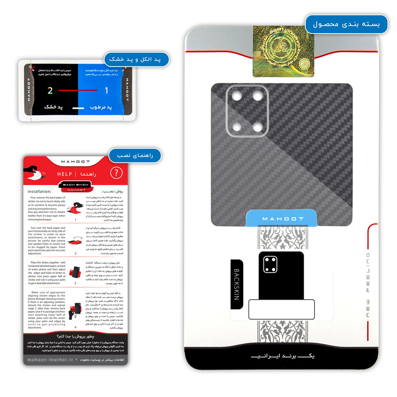 برپوش سری فیبر ماهوت، در چندین رنگ متفاوت عرضه میشود. رنگ های مشکی مات، مشکی براق، طلایی، سفید، نقرهای، بنفش و قرمز از جمله رنگهای سری فیبر مجموعه بافتدار ماهوت میباشند. نام دیگر این محصول برپوش است که نوعي استيكر(برچسب) چندلايه است و به منظور پوشش سطح پشت گوشي هوشمند ساخته شده است و كنارههاي دستگاه را پوشش نميدهد. هدف استفاده از آن ايجاد طرح، رنگ و احساسي نو براي دستگاه هوشمند است، در حالي كه زبان طراحي و ظرافت گوشي هوشمند حفظ شود. لازم به ذکر است که برپوش با وجود چسبندگي بالا هيچي اثري از خود هنگام جدا شدن برجاي نميگذارد. همچنین جنس برپوش از پليكربنات است و اين ماده تاثير قابل توجهي بر روي آنتن دهي و يا دفع حرارت گوشي هوشمند نخواهد داشت و اگر دستورالعمل نصب و جدا كردن به شيوه صحيح اجرا شود با توجه به ساختار چندلايه آن ميتوان برپوش را چندين بار استفاده كرد.