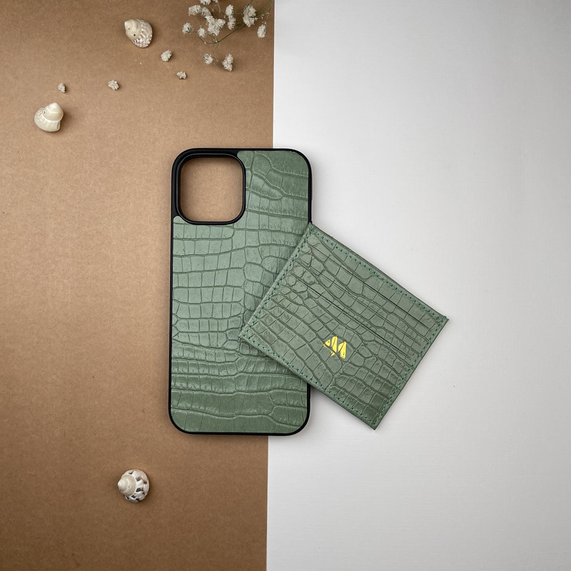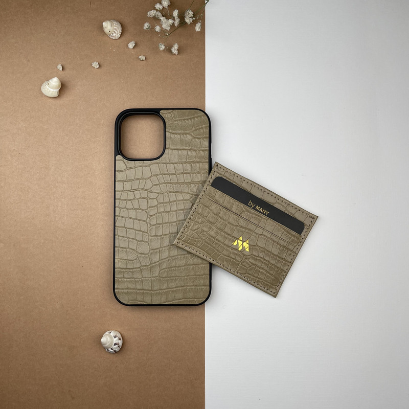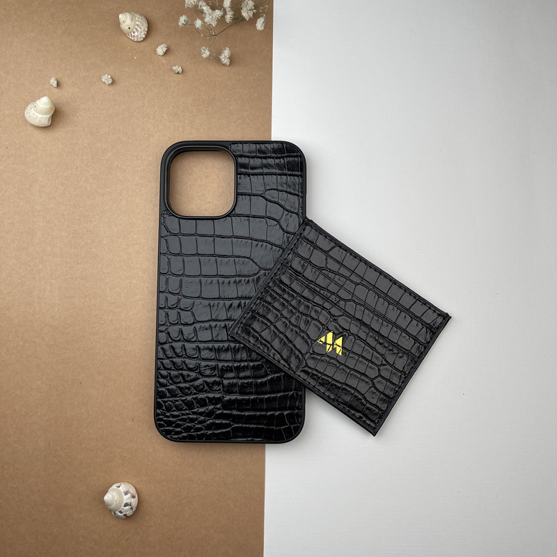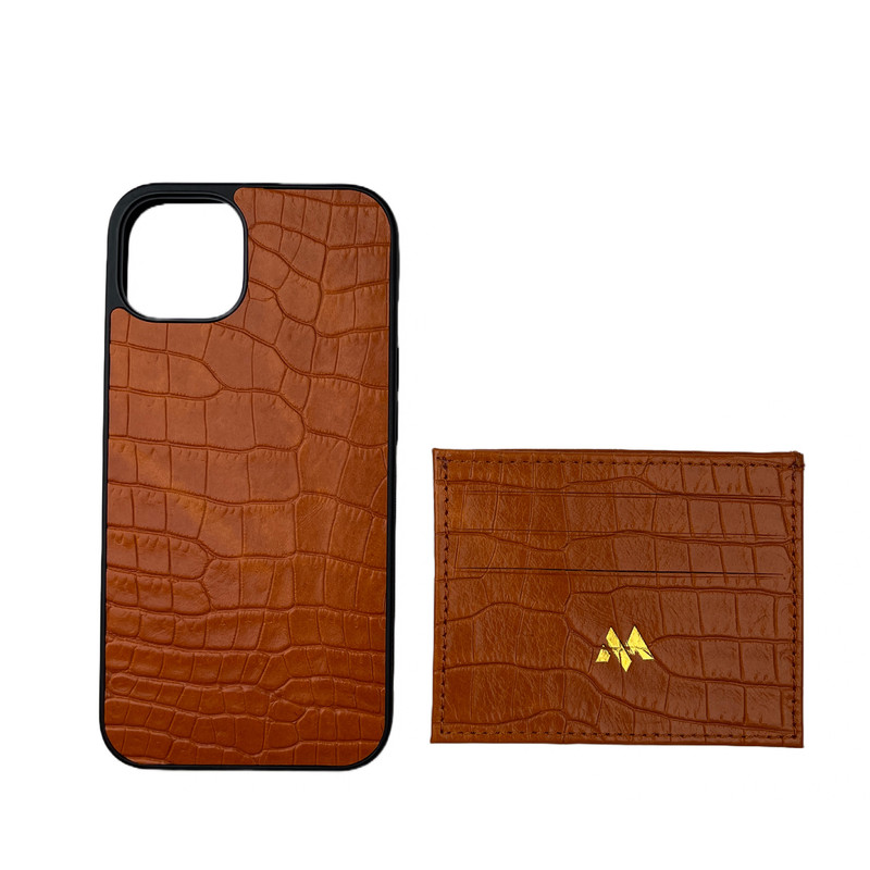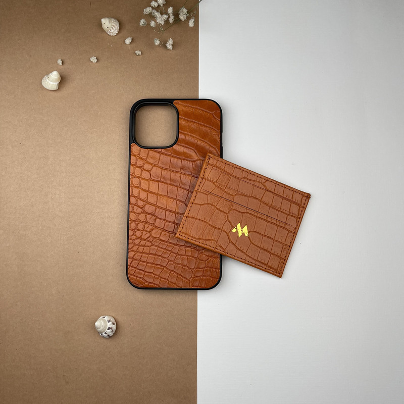 قاب موبایل ایفون 13 معمولی کار. شده از چرم طبیعی درجه یک کرو همراه جاکارتی با بسته بندی لوکس مهروموم شده