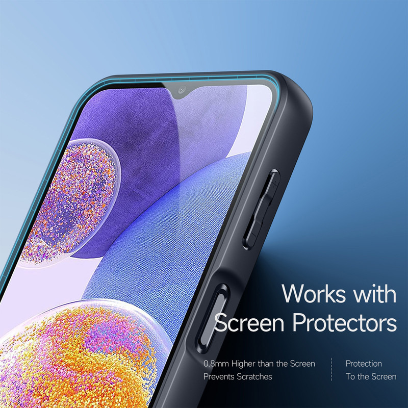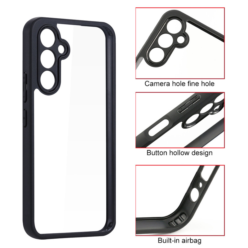 کاور گوشی سامسونگ Samsung Galaxy A24 4G سری Aimo محافظی ساده است که به دور از هر گونه زرق و برق از گوشی شما در برابر ضربه و سقوط به خوبی محافظت می کند. روکش قاب کاملا صاف و یکدست بوده و احساس خوشایندی به کاربر در هنگام کار با گوشی منتقل میکند. سطح و جنس کاور از پلاستیک با کیفیت و نسبتا نرمی ساخته شده است که به راحتی گوشی درون کاور جای گرفته و هنگام کار محدودیتی برای کار با دوربین، پورت ها و دکمه ها نخواهید داشت. ساختار این قاب از دو بخش به هم پیوند خورده تشکیل شده است. بخش اول بدنه ی اصلی قاب است که با نمای شفاف خود پشت گوشی را می پوشاند و از گوشی شما در برابر خط و خش و ضربات احتمالی حفاظت میکند. بخش دوم بامپری است که با ایجاد لایه ای ضخیم تر، دورتادور گوشی را پوشانده و آن را در برابر سقوط و ضربه های شدید ایمن نگه می دارد.