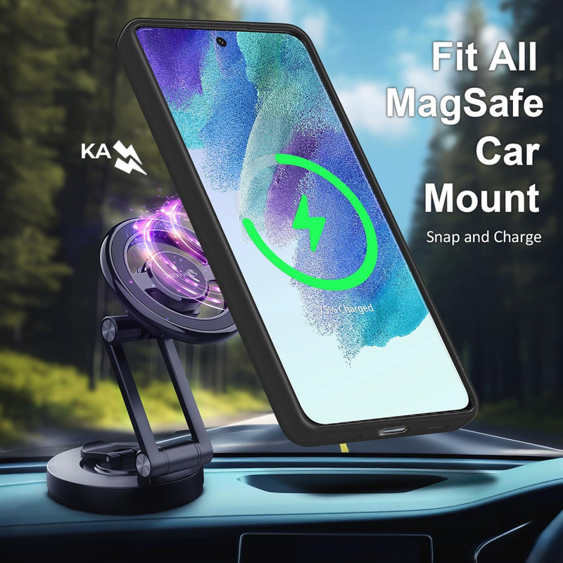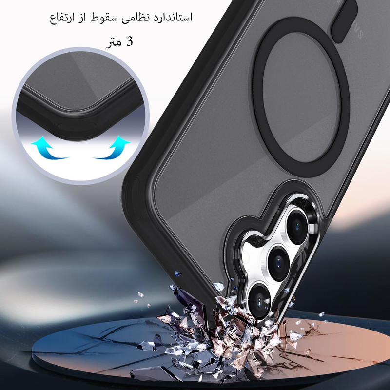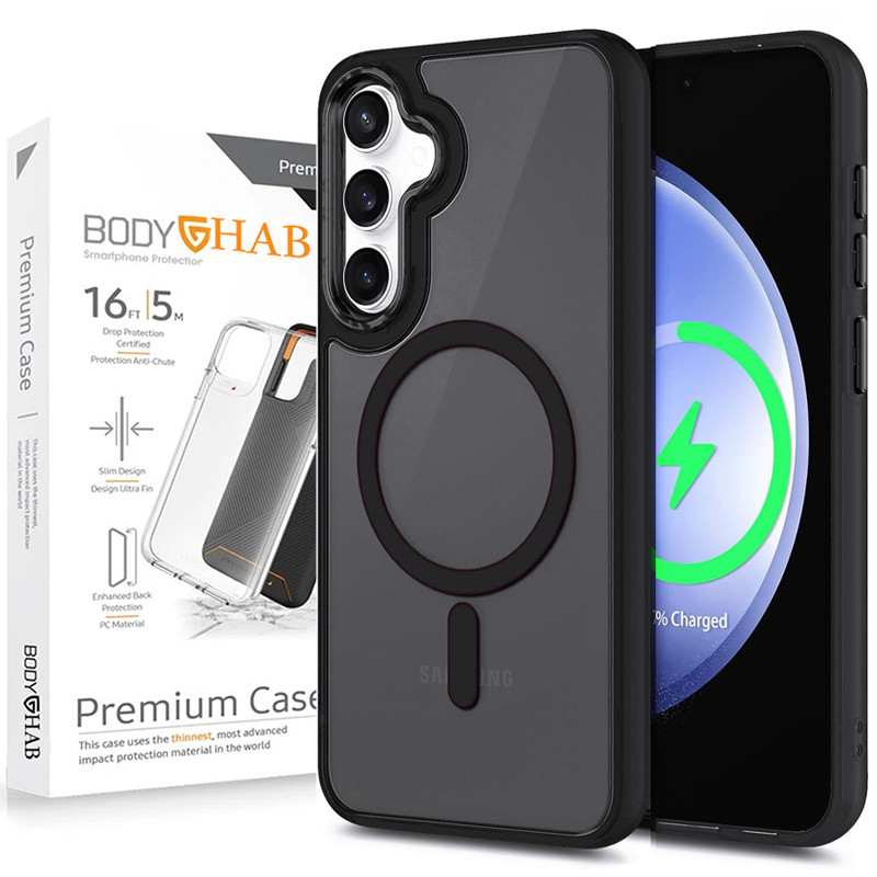 کاور مگ سیف Magsafe بادی قاب همانطور که از اسم آن مشخص است یک کاور مگنتی بسیار با کیفیت است که دارای لبه برای محافظت از صفحه گوشی و از لنز های گوشی میباشد. این کاور به نسبت کاور های مشابه از بهترین متریال اولیه ساخته شده پس در مرور زمان زرد نمیشود و مگنت های قوی استفاده شده در آن باعث میشود که لوازم جانبی که از طریق حالت آهن ربایی به آن میچسبد , محکم بماند. این کاور دارای تاییدیه استاندارد نظامی سقوط از ارتفاع ۳ متر نیز میباشد.
