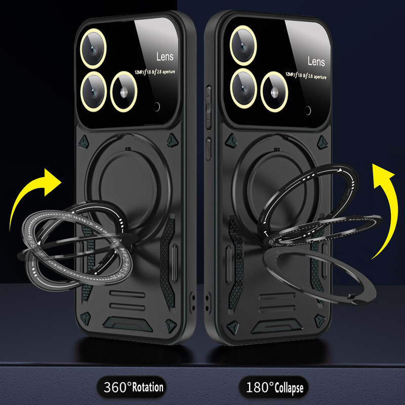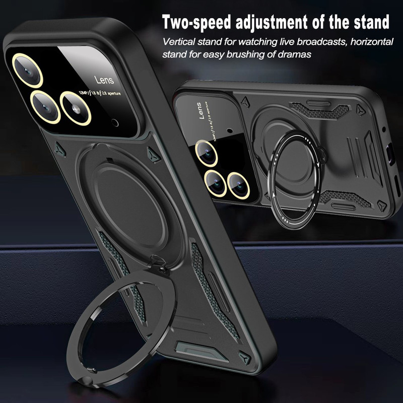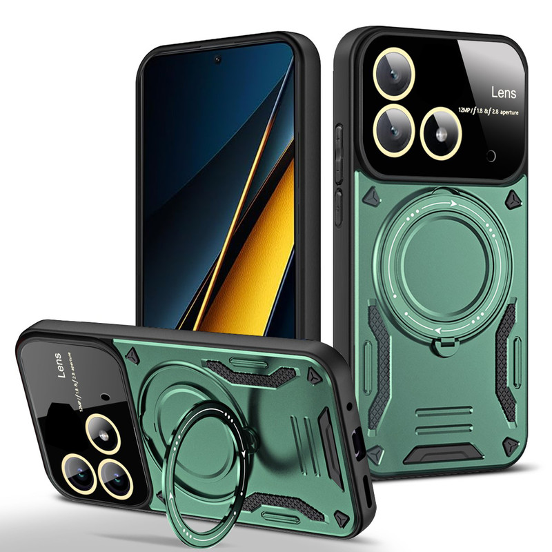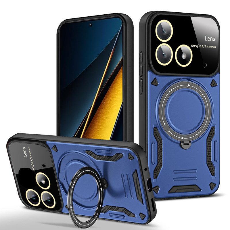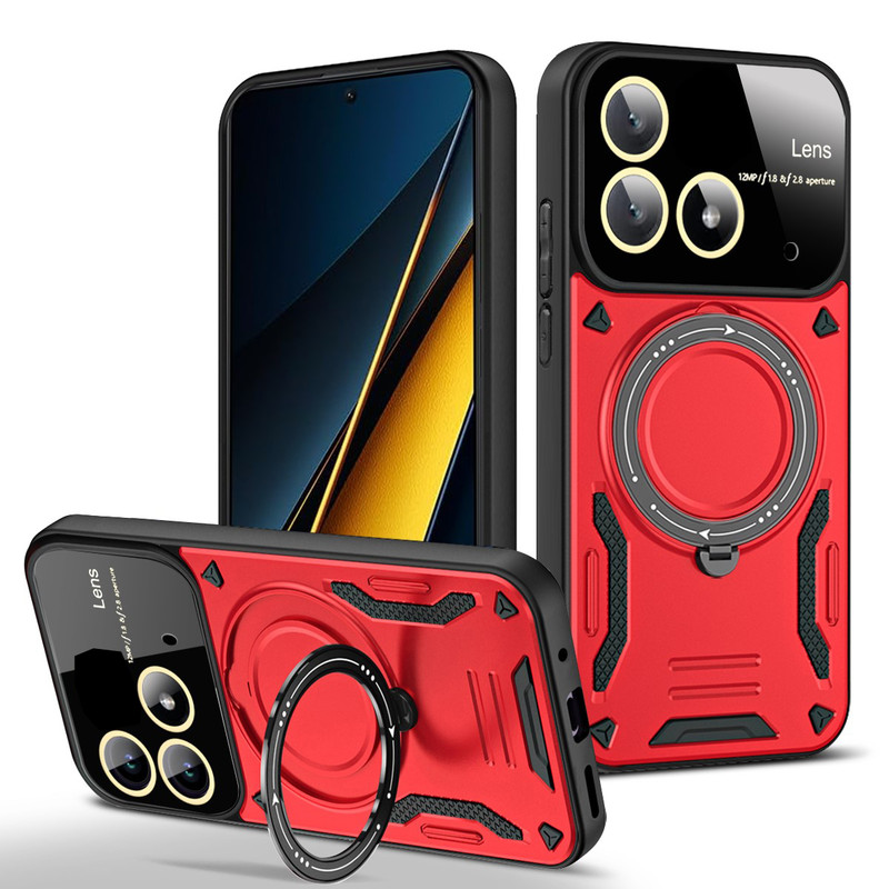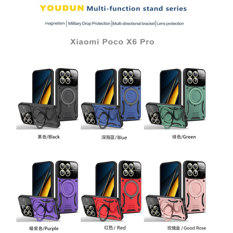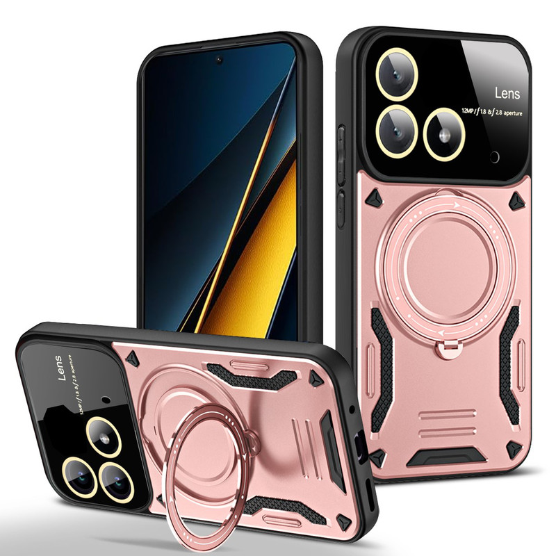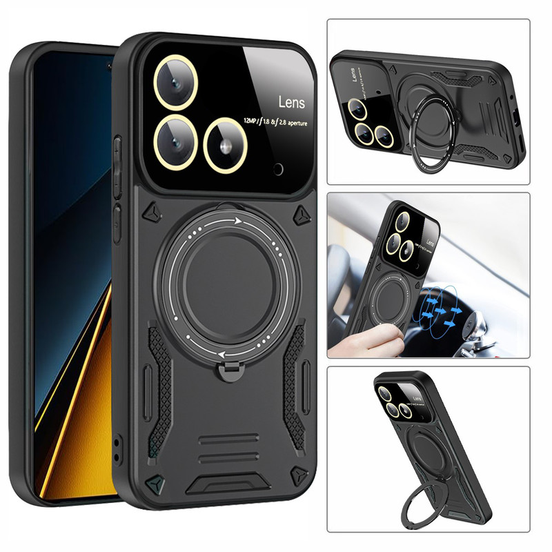 سری قابهای HybridRing ویژه افرادی با روحیه هیجانی و پر از شور و شعف طراحی شده است. قاب محافظ HybridRing از مواد PU و TPU تولیده شدهاند. این نوع پلاستیک به دلیل دوام بسیار خوبی که دارد برای ساخت قطعات داخلی اتومبیل مورد استفاده قرار میگیرد. مواد پلاستیک PU و TPU به کار رفته در تولید این محافظها را به صورت دو لایه به کار گرفته است. در نتیجه این قابها، نسبت به سایر قابهای محافظ در برابر ضربه، خط و خش، سایش و سایر آسیبهای معمول که به گوشی Poco X6 5G وارد میشود، ظاهر خاص این قابها که بگذریم باید گفت با طراحی استاندارد این محافظان گوشی، محل قرارگیری دوربین، سنسور و سایر پورتهای گوشی باز است و کاربران برای کار با این امکانات گوشی مشکلی نخواهند داشت. اما برای افزایش حس خشن این قاب روی کلیدهای گوشی با پوسته نازکی به صورت برجسته پوشیده شده است تا کاربران برای لمس کلیدها و کار با آنها مشکلی نداشته باشند.یکی از مهمترین ویژگی های این قاب وجود حلقه نگهدارنده در پشت قاب است که شما میتوانید از حلقه ای که به این قاب متصل است در موارد گوناگون استفاده کنید. برای نمونه: با قرار دادن انگشت دورن حلقه، گوشی کاملا در دست محکم می شود و احتمال افتادن گوشی از دست از بین میبرد. یا میتوانید با چرخاندن حلقه کاور را به حالت استند در بیاورید و به تماشای فیلم بپردازید. همچنین این حلقه نگهدارنده باداشتن حالت آهن ربایی می تواند به خوبی روی هولدرهای آهنربایی داخل خودرو بچسبد و دیگر نیازی به استفاده از برچسبهای آهن ربایی مجزا نخواهید داشت. همچنین دیگر نباید نگران به جای ماندن اثر انگشت بر روی قاب گوشی خود نباشید چرا که اثر انگشت بر روی این قاب نمیماند.