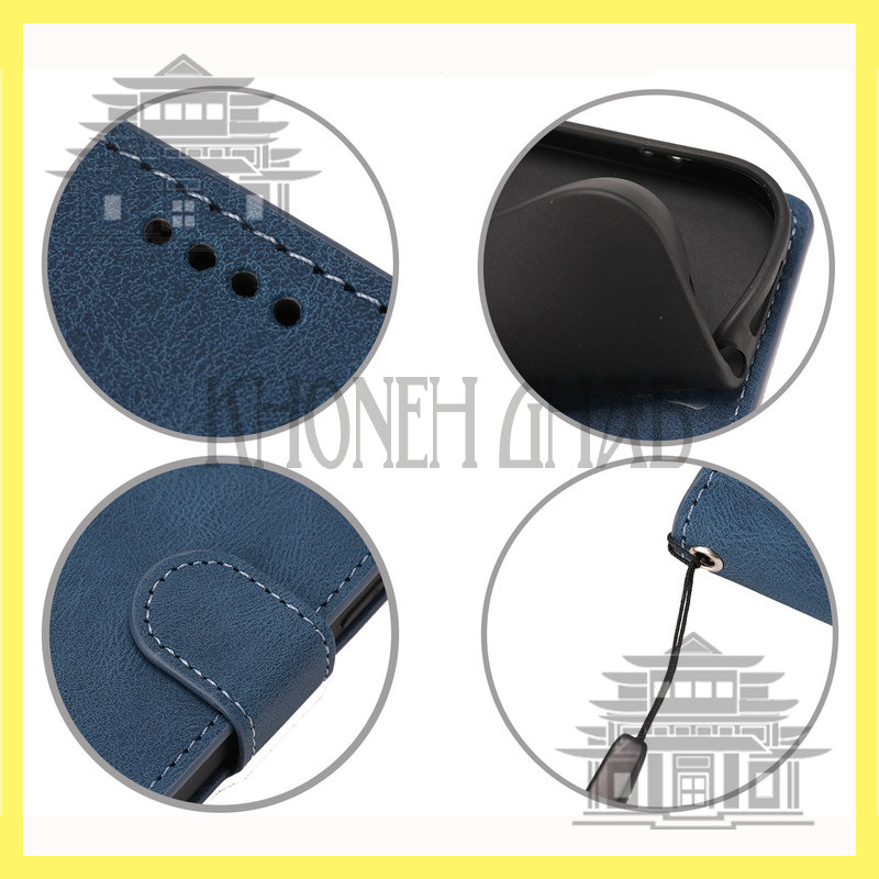 کیف کلاسوری چرمی از جنسی باکیفیت ساخته شده، وجود بند با دکمه آهن ربایی از محتویات داخل کیف به بهترین شکل مراقبت می کند. این محصول با کیفیت به شما کمک می کند تا تمام لوازم ضروری مانند گوشی، پول نقد و کارت های اعتباری را در کیفی چرمی بسیار خوش دست و شکیل در اختیار داشته باشید. دور تا دور قاب منعطف بوده و گوشی به راحتی داخل قابی که روی کیف وجود دارد قرار می گیرد. محل پورتها و دوربین به دقت برش خورده و برای شارژ نیازی به بیرون آوردن گوشی از کاور وجود ندارد. همچنین در قسمت کناری کیف، بندی تعبیه شده که از سقوط ناگهانی گوشی و یا سرقت آن جلوگیری می کند. از دیگر ویژگی های این کیف قابلیت استند شدن آن است که بسیار کارآمد و کاربردی است.