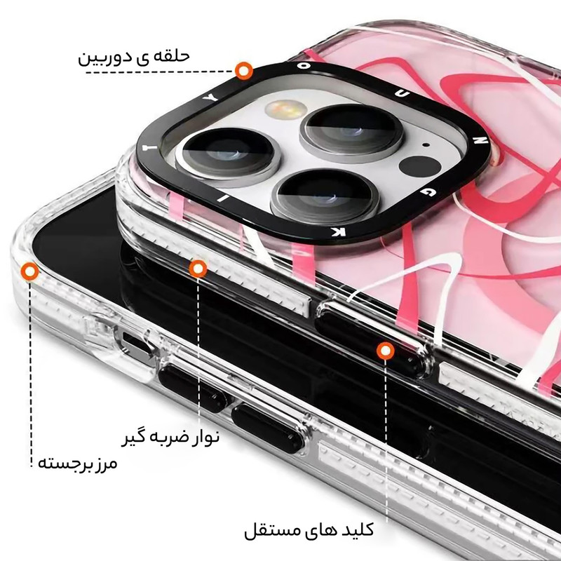 این محصول مات و نیمه شفاف می باشد بگونه ای که نور از داخل آن عبور می کند و رنگ گوشی مشخص می شود. این قاب از جنس TPU باکیفیت و مقاوم در برابر ضربه می باشد. لبه های برآمده محافظت بیشتری از صفحه نمایش در برابر هرگونه شکستگی و خط و خش ایجاد میکند . همچنین برآمدگی محافظ لنز آن، دوربین گوشی را در ایمنی کامل قرار می دهد. نواری لاستیکی در داخل لبه های قاب قرار گرفته است که علاوه بر زیبایی محافظت بیشتری از گوشی در مقابل ضربه ایجاد می کند. طراحی دکمه ها آنچنان دقیق است که کار با گوشی را برای کاربر آسان کرده است و به گفته اکثر استفاده کنندگان نرم ترین دکمه های موجود در بین قاب های آیفون با برند های مختلف می باشد و به لطف برش دقیق دسترسی به پورتهای گوشی برای کاربر آسان می باشد. این محصول با کیفیت بالا و با استفاده از تکنولوژی IMD ( چاپ دولایه ) نه تنها در برابر خط و خش مقوام است بلکه در مقابل سایش هم مقوام می باشد و همچنین رنگ محصول ثابت می باشد. مگ سیف این محصول با فناوری مکش مغناطیسی قوی و استاندارد خیال شما را از شارژ با مگ سیف راحت می کند. قابهای YOUNGKIT بواسطه طراحی جدید و بسته بندی خاص خود در شبکه های اجتماعی ترند شدند و بازار خوبی برای خود بوجود آوردند. بسته بندی قاب های یانگ کیت الهام گرفته شده از طراحی چمدان مسافرتی بوده و شدیدا برای هدیه دادن مناسب هستند و قطعا طراحی چشم نواز آن ها، عزیزانتان را شگفت زده میکند. برند یانگ کیت YOUNGKIT مبتکر در طرحهای جدید و مینیمال شما را یک قدم از بقیه جلوتر نگه می دارد.