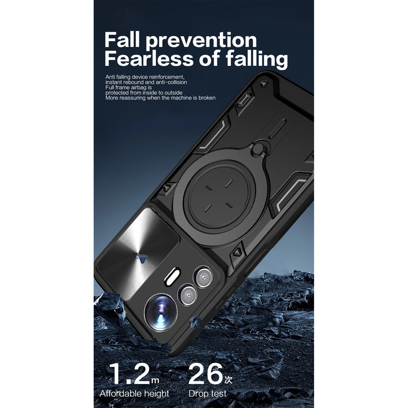 مقاوم در برابر ضربه , مقاوم در برابر آب , دارای استانداردهای نظامی مقاومت در برابر سقوط , دسترسی آسان به درگاه ها , قابلیت تبدیل شدن به استند , لبه های برجسته برای محافظت صفحه نمایش , لبه های برجسته برای محافظت دوربین , مقاوم در برابر خط و خش