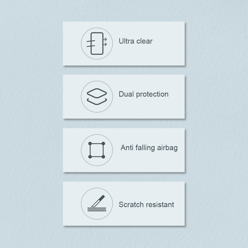 مقاوم در برابر ضربه , مقاوم در برابر آب , انعطاف پذیر , لبه های برجسته برای محافظت صفحه نمایش , لبه های برجسته برای محافظت دوربین , مقاوم در برابر خط و خش