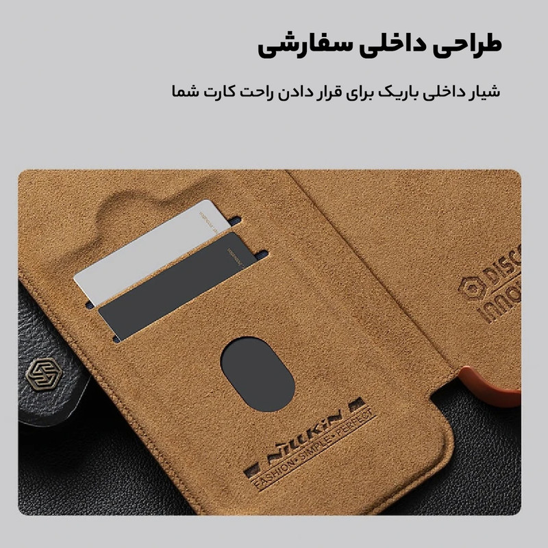 اگرجزو افرادی هستید که گوشی موبایل دائما ازدستتان میافتد،بهتر است ازمدلهای کاور360درجه استفاده کنید.کیف کلاسوری نیلکین مدلQin Prop Leatherشایدزیباترین وخوشساختترین کیفی میباشدکه برای گوشی موبایل طراحی شده است.ازهرقسمت که به این کیف نگاه میکنید ترکیب خلاقانه مهندسی و هنر را میبینید.این کیف کیفیت و دوام بسیار بالایی دارد.از گوشی شما به بهترین شکل ممکن محافظت میکند و استایلی جذاب ودرخشان به شمامیدهد.چرم به کاررفته در این کیف کلاسوری جذابیت ویژهای به آن بخشیده است ووقتی آن رالمس میکنید احساس خوشایندی خواهید داشت.این کیف استایلی کلاسیک دارد.هم از بدنه گوشی و هم ازصفحه نمایش به خوبی محافظت میکند و نگران افتادن یا آسیب دیدن بدنه وصفحه گوشیتان نخواهید بود.قسمت رویی کیف از چرم ساخته شده و این چرم ارزش بالایی رابه گوشی شما اضافه میکند.چرم به کار رفته دراین کیف بادوام وباکیفیت میباشدکه امنیت گوشی شمارابالامیبرد و همچنین از خط و خراش روی بدنه گوشی جلوگیری میکند.قسمت داخلی این کیف از پلاستیک سخت ساخته شده که امنیت کیف راچندین برابر کرده است.این کیف طراحی حرفهای و هنرمندانهای دارد.یک پوشش ضدلکه روی آن به کار رفته که باعث میشود همیشه تمیز بماند.این کیف یک محفظهی داخلی کوچک برای قرار دادن کارتهای بانکی دارد.میتوانید گوشی و کارتهای بانکیتان را یکجا داشته باشید.کیف کلاسوری نیلکین مدلQin Prop Leatherتمام قسمتهای بدنه وصفحه نمایش راپوشش میدهد بخصوص لبهها و قسمتهای حساس گوشی که بیشتر در معرض خطرند و شما میتوانید بدون نگرانی و دغدغه در محیط بیرون یا هر جای دیگری از گوشیتان استفاده کنید.این کیف کاملا متناسب با ابعاد بدنه ساخته شده و.برای کار کردن با گوشی نیازی به خارج کردن کیف ندارید.جزئیات به کار رفته در این کیف جذابیت ویژهای به آن داده است و ترکیب آن با رنگهای خاص و جذابی که دارد استایلی متفاوت و جذاب به شما میبخشد همچنین این کیف دارای یک محافظ لنز لولایی میباشد.این محافظ از جنس آلیاژ فلزی میباشد.باز و بسته کردن این محافظ لنز بسیار آسان میباشد.ویژگی دیگری که این محافظ لنز دارد قابلیت استند شدن است.زمانی که می خواهید فیلمی مشاهده کنید می توانید لنز را باز کرده و به صورت باز روی میز قرار دهید و گوشی را به حالت استند تبدیل کنید.