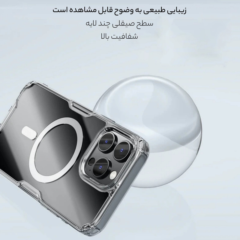 بدنهی زیبا و جذاب موبایلتان به پوششی دقیق و بینقص نیاز دارد.برخورد هر شی نوک تیز و هر خراش جزئی میتواند ظاهر براق آن را از بین ببرد.هر بار لیز خوردن گوشی از دستتان میتواند برابر با ضرری چند میلیونی باشد.پس باید از قابی مطمئن برای محافظت از آن استفاده کنید.قابی که امنیت تمام قسمتهای حساس گوشی را فراهم کند.خبر خوب اینکه قاب جدید نیلکین همهی این ویژگیها را دارد.کاور نیلکین مدل Nature TPU Pro Magnetic خیالتان را از هر نظر راحت میکند.با مشاهده کارایی و قابلیتهای ویژهی این قاب شگفت زده خواهید شد.تفاوت این قاب با نسخه معمولی در ساپورت کردن شارژر مگ سیف هست ،که با این قاب به راحتی میتوانید آیفون خود را با شارژر مگ سیف سریع شارژ کنید و یا به نگهدارنده آهنربایی وصل کنید.این قاب فوق العاده با فرآیند قالبگیری تزریقی از مواد TPU و PC ساخته شده است.ترکیب دو متریال سخت و نرم محافظت بینقص قاب را تضمین میکند.ضخامت نازک این قاب هیچ مانعی برای شارژ وایرلس گوشی ایجاد نخواهد کرد.پس برای شارژ گوشی نیازی به جدا کردن قاب ندارید.قاب با پوشش ضخیم در لبههای ال سی دی محافظتی همه جانبه ارائه میدهد و از خراشیدگی و آسیب ناشی از ضربه جلوگیری میکند.کاور در قسمت پورتها، حسگرها و دوربینها بطور دقیقی برش خورده تا برای استفاده از این قسمتها نیازی به جدا کردن قاب نباشد.این قاب دارای کیسههای هوا در گوشههای قاب میباشد که اثر ضربه را کاهش داده و مانع انتقال فشار آن به اجزای داخلی گوشی میشوند.کاور حالتی شفاف،صاف،نازک و ابریشمی دارد که ظاهر موبایلتان را حفظ کرده و به آن جلوهی براقی میدهد.انعطاف بالای این قاب به دفع موثر ضربهها کمک کرده و نصب و جداسازی آن را به آسانی امکانپذیر میکند.کاور نیلکین مدل Nature TPU Pro Magnetic،قابی خوش ساخت که متناسب با ابعاد موبایلتان ساخته شده و گوشی بطور کامل داخل آن فیکس میشود.پوشش روی کلیدها از خطوخش آنها جلوگیری کرده و مانع نفوذ ذرات ریز گردوغبار به این قسمتها میشود.نگران لنز دوربینتان نباشید، ارتفاع جزئی قاب در اطراف این قسمت مانع برخورد مستقیم ضربه خواهد شد.برخلاف قابهای بیکیفیت بدنهی این قاب ضد اثر انگشت و لکههای چربی است و آلودگیها جذب نمیکند.آهنربای تعبیه شده روی قاب امکان اتصال شارژ بیسیم(Magsafe)را فراهم میکند.