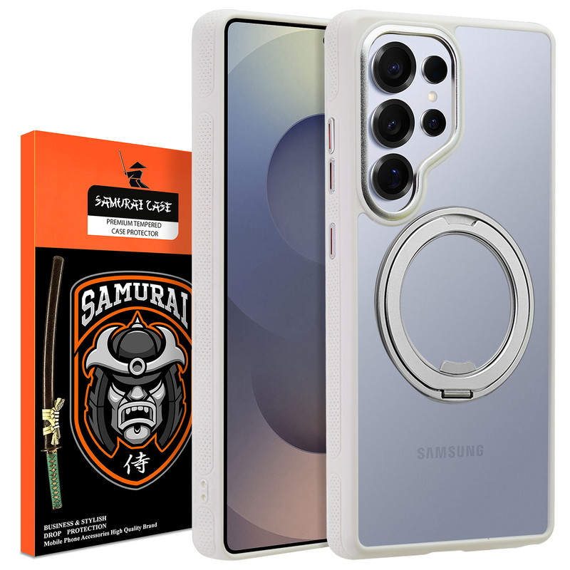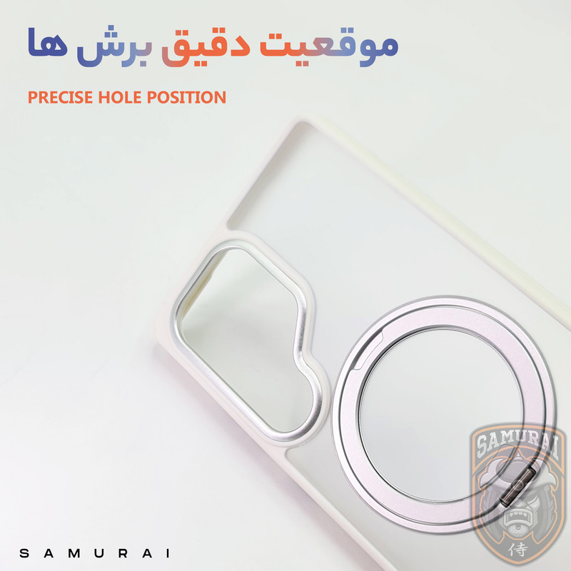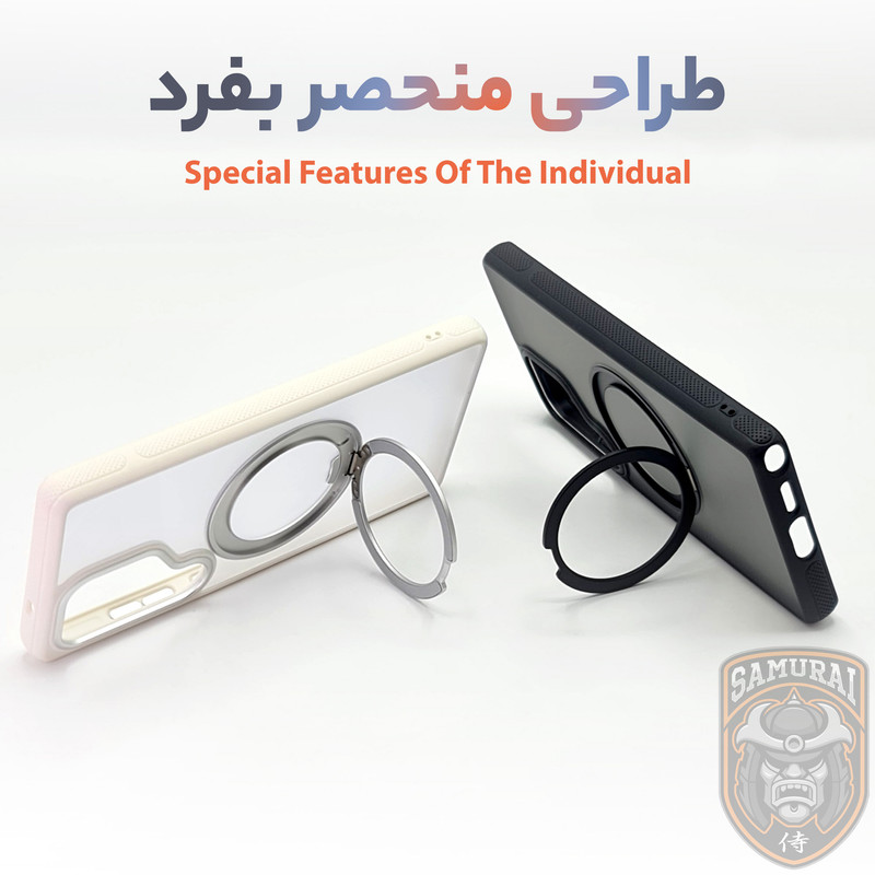 قاب سامسونگ Galaxy S25 Ultra سامورایی مدل Vetro با طراحی شفاف مات، انتخابی شیک و مقاوم برای محافظت از گوشی شماست. پشت قاب با جنس بیرنگ ضدلک، هم ظاهر اصلی آیفون را حفظ میکند و هم در برابر خط و خش مقاوم است. رینگ چرخان پشت قاب، امکان استفاده بهعنوان استند را فراهم میکند و با قابلیت چرخش ۳۶۰ درجه، تجربه کاربری راحتتری میسازد.