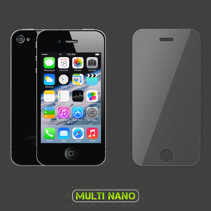 محافظ صفحه نمایش نانو Multi Nano ، گلسی باساختار شفاف و بدون حاشیه رنگی که توسط فناوری نانو ساخته شده و از ضخامت 0.2 میلی متری برخوردار است.(شیشه ای نمی باشد) و باعث مقاومت بسیار بیشتر در برابر ضربه نسبت به گلس های معمولی شده است همچنین کاملا نشکن است و در صورت برخورد ضربه نخواهد شکست بسیار شفاف است و به مرور زمان کدر نخواهد شد و لمس آن با توجه به ساختار تکنولوژی روغنی، بسیار آسان و روان است و از صفحه نمایش گوشی موبایل (اپل آیفون 4 اس) در برابر ضربات احتمالی , خط و خش و... محافظت میکند.محافظ صفحه نمایش نانو مولتی نانو قسمت های خمیده (curved) صفحه گوشی را پوشش نمیدهد اما برای گوشی هایی که خمیدگی ندارند، صفحه نمایش را به خوبی پوشش میدهد.همچنین قسمت دوربین سلفی برای محافظت هرچه بهتر از صفحه نمایش و نظافت راحت تر پوشش داده شده و تداخلی در عملکرد دوربین یا سنسورهای مجاور ندارد.با توجه به ضخامت کم این محصول نسبت به گلس های 3 میل، برای گوشی هایی که حسگر اثر انگشت آن روی صفحه نمایش تعبیه شده اند، نیز پیشنهاد میشود.