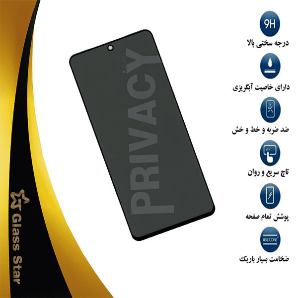 گلس حریم شخصی یا Full Privacy با برند گلس استار یک انتخاب بسیار مناسب برای افرادی است که نمی خواهند اطلاعات شخصی، مانند عکس یا متن هایشان توسط دیگران مخصوصا در مکان های شلوغ مثل مترو و اتوبوس دیده و خوانده شود. این نوع گلس فول پرایوسی به گونه ای طراحی شده که می تواند تمام صفحه گوشی موبایل شما را پوشش داده و استفاده از آن برای گوشی موبایل شیائومی Poco X5 Pro یک گزینه ایده آل به شمار می رود. ویژگی امنیتی این نوع گلس، باعث پایین آمدن کیفیت تصویر نمایشگر گوشی شما نمی شود و دید شما را نسبت به صفحه گوشی کم نمی کند. جنس آن از شیشه حرارت دیده و درجه سختی استاندارد 9H ساخته شده و نصب آسانی دارد و در صورت نصب صحیح، روی صفحه نمایش شما حباب نمی اندازد. گلس حریم شخصی یا Full Privacy، با ضخامت بسیار کمی که دارد روی کیفیت و کارایی تاچ صفحه نمایش شما تاثیر منفی نمی گذارد. یکی از ویژگی های بارز دیگر این محافظ صفحه نمایش این است که تمام قسمت های صفحه نمایش را به صورت کامل پوشش داده و به مدت طولانی روی صفحه فیکس می شود. همچنین با مقاومت بالایی که در برابر ضربه و ایجاد خط و خش دارد، می توانید با خیال راحت این گلس را تهیه نمایید.