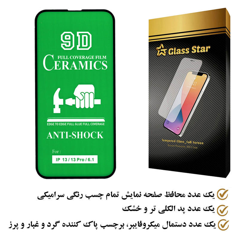 این روزها، تلفن همراه نقش مهمی در زندگی ما دارد. بنابراین تهیه گلس مناسب، از مهمترین اقدامات در محافظت از گوشی است. یکی از گزینه های مناسب و محبوب در بازار، گلس سرامیکی شفاف گلس استار (Ceramic Clear) است که نظر کاربران زیادی را به خود جلب کرده و استفاده از آن برای گوشی موبایل آیفون 13 پرو یک گزینه ایده آل به شمار می رود. گلس سرامیکی شفاف از مقاومت بسیار بالایی در برابر ضربه و خط و خش برخوردار است و انعطاف پذیری بالایی دارد. همچنین این گلس ها ضخامت کمی دارند و در عین حال بسیار شفاف اند و در کیفیت تاچ صفحه نمایش اختلالی ایجاد نمی کنند. گلس های Ceramic Clear، هنگام وارد شدن ضربه شدید، خرد و پخش نمی شوند و این ویژگی نه تنها از آسیب رسیدن به گوشی ممانعت می کند، بلکه مانع از آسیب رساندن به دست کاربر، هنگام تعویض گلس می شود. این مدل گلس ها به علت تمام چسب بودن (تمام سطح گلس، دارای چسب بسیار قوی می باشد، نه فقط دور آن) از ایجاد حباب جلوگیری کرده و از طول عمر بالایی برخوردار می باشد.
