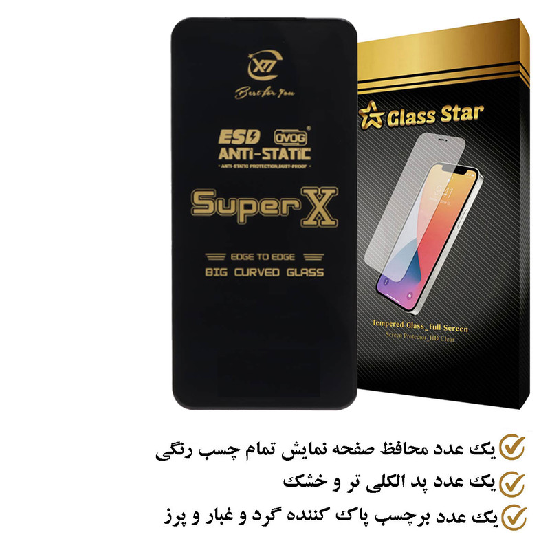 محافظ صفحه نمایش SuperX گلسی از جنس شیشه حرارت دیده فشرده شده با مقاومت 9H، بسیار شفاف و ضد خط و خش است. گلس SuperX با حاشیه مشکی در لبه ها و پوشش دهی کامل صفحه نمایش سلامت نمایشگر شما را تضمین می کند و مانع آسیب رسیدن به تاچ و ال سی دی گوشی شما خواهد شد.گلس SuperX ضد اثر انگشت است و از قابلیت تاچ سریع گوشی نمی کاهد.