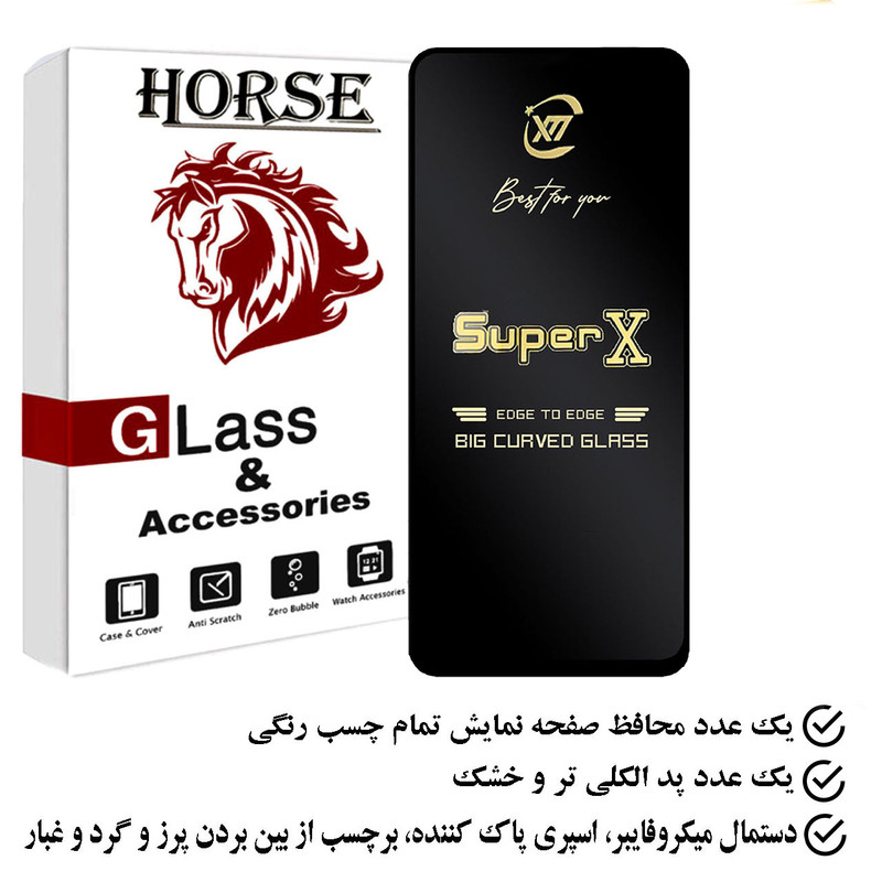 محافظ صفحه نمایش SuperX گلسی از جنس شیشه حرارت دیده فشرده شده با مقاومت 9H، بسیار شفاف و ضد خط و خش است. گلس SuperX با حاشیه مشکی در لبه ها و پوشش دهی کامل صفحه نمایش سلامت نمایشگر شما را تضمین می کند و مانع آسیب رسیدن به تاچ و ال سی دی گوشی شما خواهد شد.گلس SuperX ضد اثر انگشت است و از قابلیت تاچ سریع گوشی نمی کاهد.