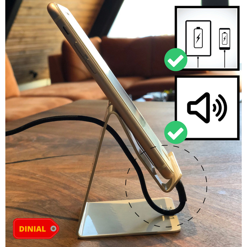 نگهدارنده موبایل و تبلت دینیال مدل DINIAL-0007 با توجه به طراحی ایتالیایی خود ، یک محصول دکوراتیو ، خلاقانه ، جذاب و بسیار کاربردی می باشد. نگهدارنده موبایل و تبلت دینیال ، کار را برای شما راحت میکند به صورتی که شما میتوانید در خانه ، محل کار و غیره حس خوب و راحت استفاده از این محصول را تجربه کنید. این محصول میتواند هر نوع و مدل موبایل و تبلت را بصورت عمودی و افقی نگه دارد و همچنین با توجه به 4 عدد پایه فومی که در زیر این استند تعبیه شده است ، از لرزش و لغزش موبایل در هنگام استفاده کاملا جلوگیری میکند. نگهدارنده موبایل وتبلت دینیال ، از جنس فلز مقاوم طراحی شده شده و دارای رنگ الکترواستاتیک کوره ای ضد زنگ ، ضد خش و قابل شست و شو می باشد. از مزیت های منحصر به فرد این محصول میتوان به این موضوع اشاره کرد که هنگام قرار دادن گوشی و یا تبلت خود بر روی آن، میتوانید سیم شارژر و یا هندزفری خود را نیز به دستگاه خود متصل نگهدارید و مزاحمتی در هنگام قرار دادن و یا برداشتن موبایل روی استند نداشته باشید. این محصول کاربردی برای پرسنل شرکت ها ، دانش آموزان و دانشجویان و غیره بسیار مناسب میباشد و همچنین با توجه به بسته بندی شیکی که دارد میتواند هدیه مناسبی نیز باشد.