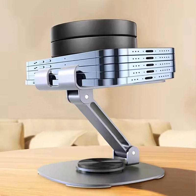 طراحی منحصر به فرد این استند به گونهای است که برای انواع گوشیهای موبایل قابل استفاده می باشد. این محصول قرارگیری موبایل و یا تبلت را در 5 زاویه ی متفاوت برای کاربرفراهم میکند و امکان کار با گوشی و تماشای ویدئو و کلاس های آنلاین را در حالات و زوایای مختلف برای ما فراهم میسازد. در نتیجه این محصول، به ابزاری کاربردی مبدل شده که با توجه به طراحی ارگونومیک، موجب زیبایی بیشتر میز کار شما خواهد شد. با توجه به سبک و ظریف بودن آن به راحتی در کیف و جیب شما هم جا میشود طراحی این محصول به گونهای است که علاوه بر استحکام بالا ، مناسب گوشی با ابعاد 4.7 اینج تا 7 اینج میباشد قسمت زیرین محصول نیز ضد لغزش بوده و به گونهای طراحی شده که با سطوح اصطکاک دارد و اگر آن را روی سطوح صاف قرار دهیم دچار لغزش نمیشود. این پایه نگهدارنده 360 درجه ساخته شده از ورق فولادی با مقاومت بسیار بالا میباشد و به دلیل کیفیت بالای این فلز، دارای عمر طولانی و بدون خرابی است . این محصول با ثبات بالا و بدون تکان حتی با وجود وزن نسبتاً سنگین میتواند بهترین گزینه برای استفاده ی شما در محل کار و منزل باشد . این هولدر با قابلیت چرخش 360 درجه روی محور افقی و قابلیت چرخش 180 درجه روی محور عمودی بسیار منحصر به فرد است . به دلیل قابل چرخش بودن این محصول شما میتوانید پایه ی نگهدارنده را در هر زاویه دلخواه تان تنظیم کنید. این استند دارای شیار وسط پایه جهت اتصال کابل شارژ گوشی میباشد.