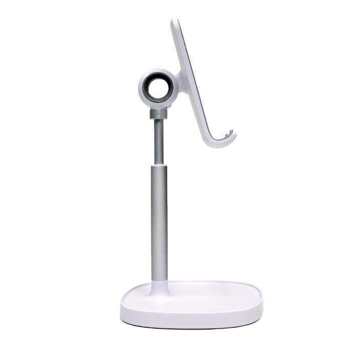 جنس این کالای 221 گرمی از آلیاژ آلومینیوم بوده و دارای ابعاد 11x11x20 سانتی متر می باشد این پایه نگهدارنده رومیزی برای نگهداری گوشی های موبایل تا سایز 11 اینچ مناسب است، قسمت بالایی این استند قابلیت چرخش 360 درجه دارد و همچنین می توان آن را 180 درجه بالا و پایین آورد که این ویژگی ها سبب آن شده که بتوان به واسطه این محصول از موبایل در زاویه دید دلخواه استفاده کرد. همین طور در پشت این هولدر حفره ای وجود دارد که می توان کابل را از آن رد کرد و استفاده راحت تری از آن داشت.