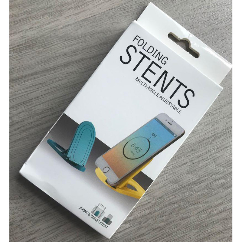 استند تاشو Folding STENTS در رنگ بندی های مختلف ارائه می شود. یکی از ویژگی های این استند اندازه کوچک و قابل حمل و آسان آن است که به راحتی می توان آن را در جیب و کیف خود قرار دهید. برای پایداری بهتر تلفن همراه و تبلت خود نیز یک پد در محل قرارگیری دستگاه قرار گرفته که از لیز خوردن دستگاه جلو گیری می کند.