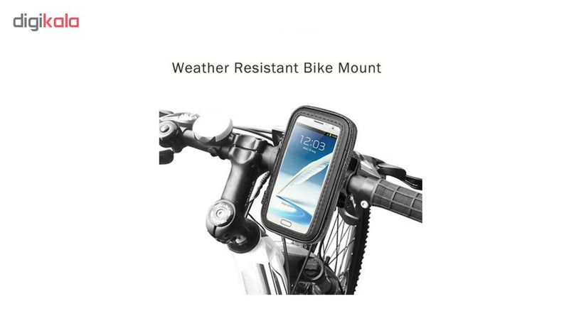 هولدر Weather Resistant Bike Mount مخصوص تمامی موبایل های دارای4 سایز s-m-l-xl میباشد، طراحی این نگه دارنده بسیار زیبا و حرفه ای میباشد کمپانی سازده این استند از ترکیب پلاستیک مقاوم و با کیفیت PC و چرم مصنوعی بهره برده است . که به سادگی بر روی دسته فرمان موتور و دوچرخه تنها با بستن گیره نگه دارنده بر روی فرمان انجام میگیرد .گوشی موبایل شما در درون محفظه ای که از چرم مصنوعی با دوام ساخته شده است قرار میگیرد ، بر روی این محفظه قمستی مستطیلی شکل برش خورده است این قسمت با استفاده از پلاستیک شفاف TPUپوشیده شده است تا علاوه بر اینکه صفحه نمایش گوشی شما دیده شود شما بتوانید صفحه نمایش گوشی خودر را لمس کنید و در کار کردن با گوشی خود هنگامی که در درون این محفظه قرار گرفته است محدودیتی نداشته باشد ، به لطف استفاده از این نوع پوشش همه جانبه گوشی شما علاوه بر اینکه در مقابل صدمات و ضربات احتمالی محفوض خواهد بود در برابر نفوذ آب و رطوبت و گردوغبار نیز مقاوم خواهد بود تا شما بتوانید بدون هیچ نگرانی از این نگه دارنده در تمامی شرایط آب و هوایی استفاده کنید.
