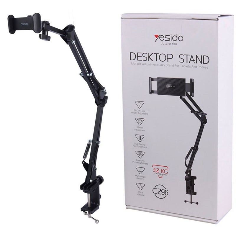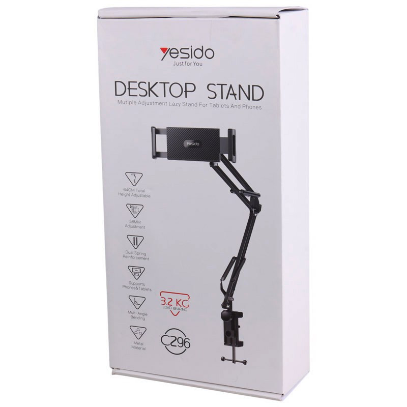 هولدر موبایل و تبلت یسیدو مدل C296 محصولی از کارخانه یسیدو است. این محصول دارای بدنه مقاوم در برابر ضربه و فشار از جنس پلاستیک و فلز است.مناسب برای گوشی موبایل و تبلت در محدوده سایز 4.7 الی 13 اینچ است.عدم آسیب به قاب گوشی یا تبلت به دلیل وجود پد سیلیکونی روی استند در این محصول تعبیه شده است. امکان چرخش 360 درجه ای و تعیین بهترین زاویه دید برای کاربر، دارای طول کلی 64 سانتی متر دارد. دارای بازو با قابلیت جمع شوندگی، پایه مقاوم و انعطاف پذیر با قابلیت تغییر حالت و افزایش طول است. قابل اتصال از طریق گیره ی پایین بدنه بر روی لبه میز و سطوح صاف با حداکثر ضخامت 58 میلی متر را دارد.