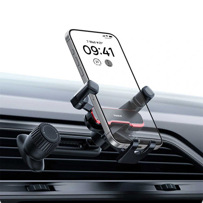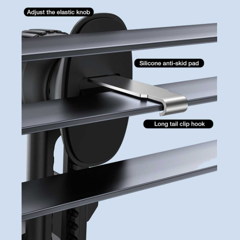 هولدر موبایل دریچه کولر بیسوس دارای شیاری است که میتوانید به راحتی بازو را ارتقا دهید؛ این ویژگی به شما این امکان را میدهد که بازوی هولدر را برای تنظیم بهتر ارتفاع یا زاویه دید بلند کنید. این قابلیت موجب میشود که گوشی موبایل به راحتی قابل مشاهده و در دسترس باشد و شما بتوانید آن را به هر شکلی که نیاز دارید تنظیم کنید.
