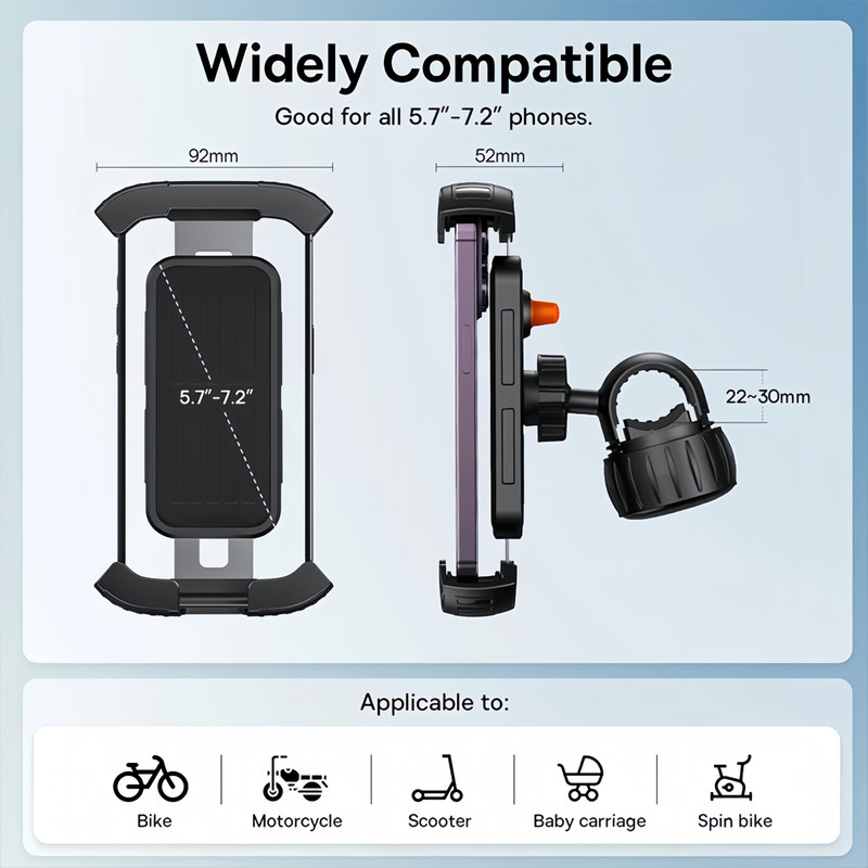 نصب روی دسته موتور و دوچرخه | نصب آسان و مطمئن | بازو با قابلیت چرخش 360 | کیفیت بالای ساخت