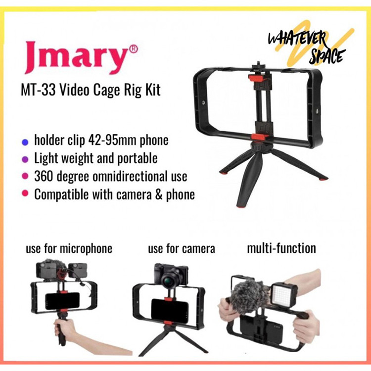 با سه پایه Jmary MT-33 شما می توانید به راحتی 4 دستگاه مختلف را به این سه پایه متصل نمایید شاید برای شما سوال پیش آمده که این 4 دستگاه میتوانند چه محصولاتی باشند؟ به لطف محفظه نگهدارنده آن می توانید تلفن همراه خود را به راحتی در آن قرار دهید با وجود سوراخ های موجود در اطراف این سه پایه می توانید به راحتی نور LED و میکروفن و یا حتی دوربین ثانویه خود را در این سه پایه قرار دهید.