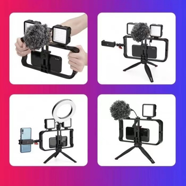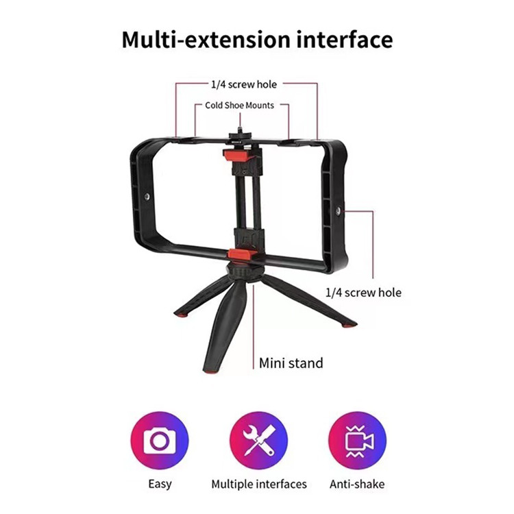 ایده آل برای ضبط فیلم های با کیفیت بالا - همزمان نگه داشتن دو دستگیره می تواند تلفن همراه را به راحتی حفظ کنید و با این کار لرزش را به شدت کاهش دهید. ابزاری خارق العاده برای گرفتن فیلم با کیفیت بالاتر. می توانید آن را با هر Trpod ، Slider ، Stabilizer یا Dollys و ... نصب کنید و با این کار کیفیت تصویر برداری خود را افزایش دهید. سازگار با همه تلفن های هوشمند (4 اینچ تا 7 اینچ). برای گرفتن فیلم های حرفه ای می توانید همزمان نور LED اضافی ، میکروفون یا سایر ضمیمه ها را اضافه کنید.چراغ LED را ضمیمه کرده و می توانید در صحنه های مختلف فیلم بگیرید.به عنوان مثال ، در شب یا در محیط تاریک فیلم بگیرید
