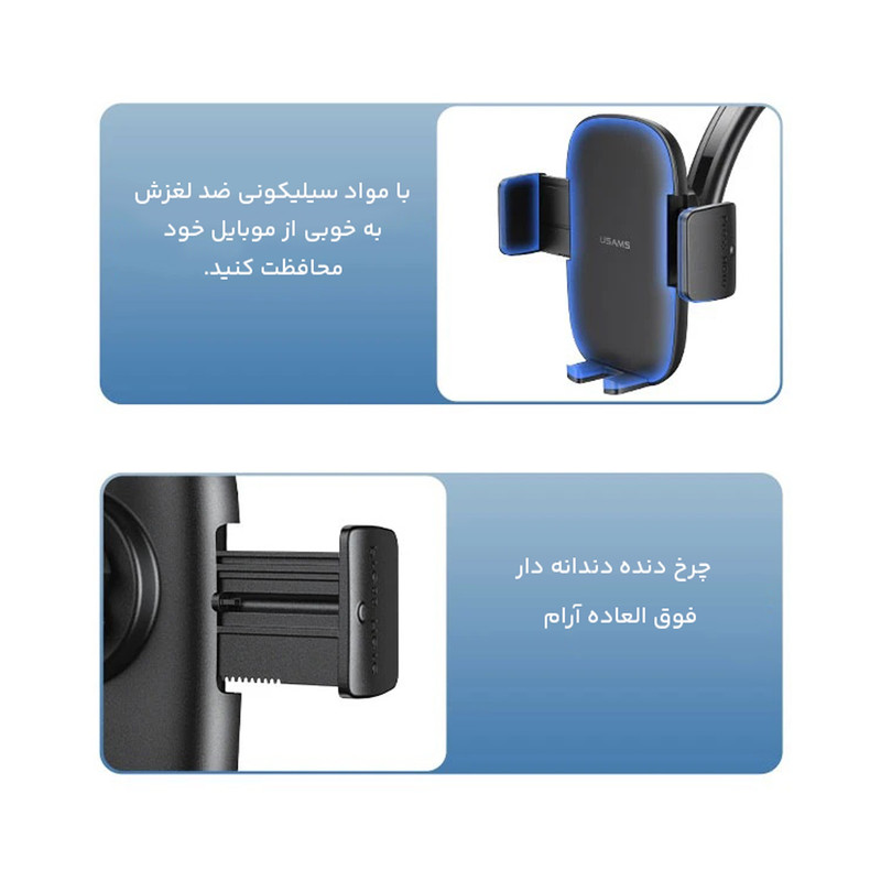 استفاده از گوشی موبایل به بخش جدا نشدنی زندگی مردم تبدیل شده است. تمامی افراد تقریبا در هر لحظه ای در حال استفاده از موبایل هستند. یکی از این موارد استفاده از موبایل حین رانندگی است. شما گاها نیاز دارید تا به تماس هایتان پاسخ دهید، تماس تصویری برقرار کنید و یا از نقشه مسیریابی استفاده کنید. شرکت یوسمز با بررسی نیاز مردم اقدام به طراحی و تولید نگهدارنده گوشی موبایل US-ZJ063 کرده است. شما با تهیه این هولدر یک نگهدارنده با دو کارایی اتصال به داشبود و اتصال به دریچه کولر خواهید داشت. هولدر پرووان US-ZJ063 قابلیت مکنده دارد که به راحتی میتوانید آن را به راختی به شیشه و یا داشبورد خود بچسبانید و در هر زاویه ای از آن استفاده کنید.از جمله نکات مثبت این هولدر میتوان به قابلیت انطباق با گوشیهای تا ابعاد 7.2 اینچ اشاره کرد.
