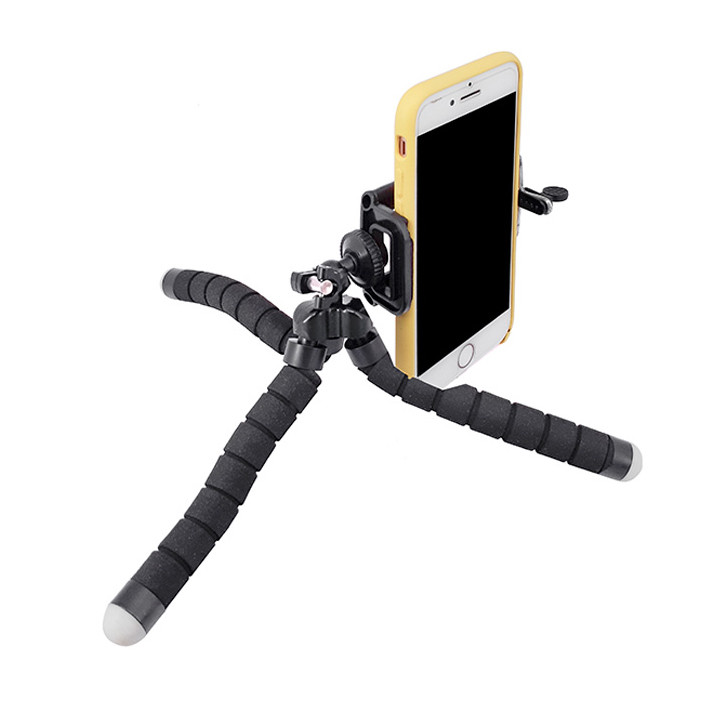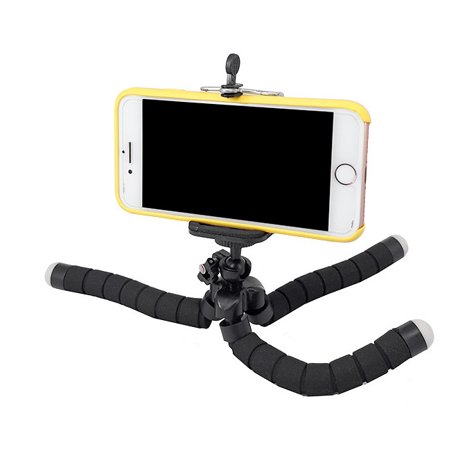 سه پایه گوریلا H-08 با پایه های فلزی و روکشی از جنس ابر با قابلیت انعطاف پذیری بسیار بالا مناسب عکاسی موبایلی در حالت های مختلف است.پایه های این مدل می تواند در حالت های مختلف تغییر فرم دهد و روی هر سطحی قرار گیرد.بال هد این سه پایه با پیچ استاندارد 1.4 اینچی تحمل وزن 200 گرم را دارد.همراه این سه پایه یک عدد هولدر نگهدارنده موبایل ارائه می شود که به کمک آن می توانید گوشی خود را بر روی سه پایه قرار دهید.