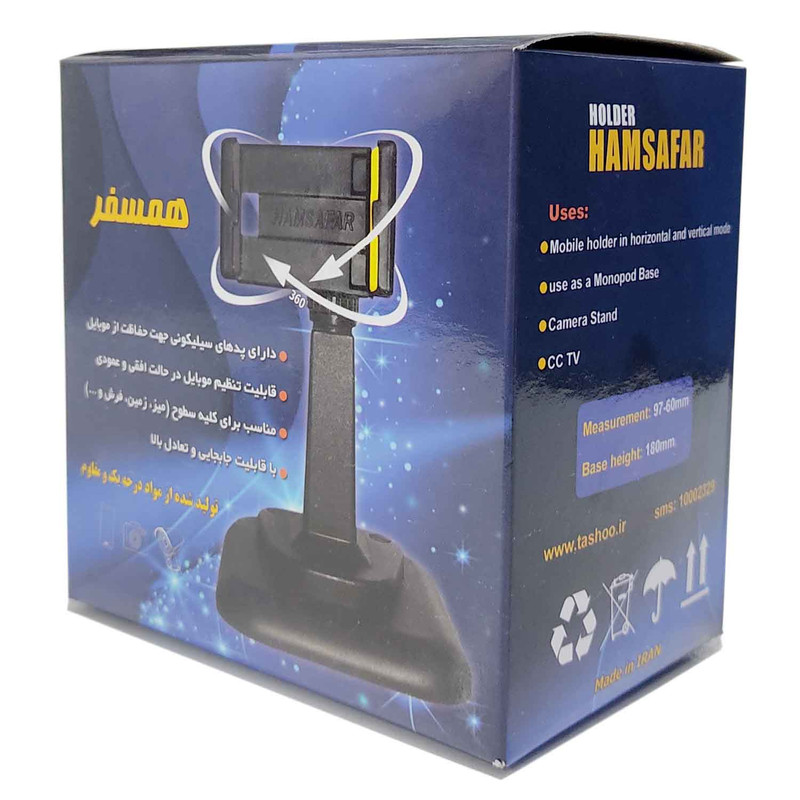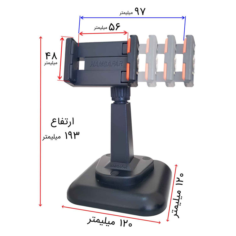 نگهدارنده موبایل همسفر را میتوان در تمامی زوایا قابلیت تنظیم دارد و امکان استفاده از گوشی بصورت افقی یا عمودی را به شما میدهد.