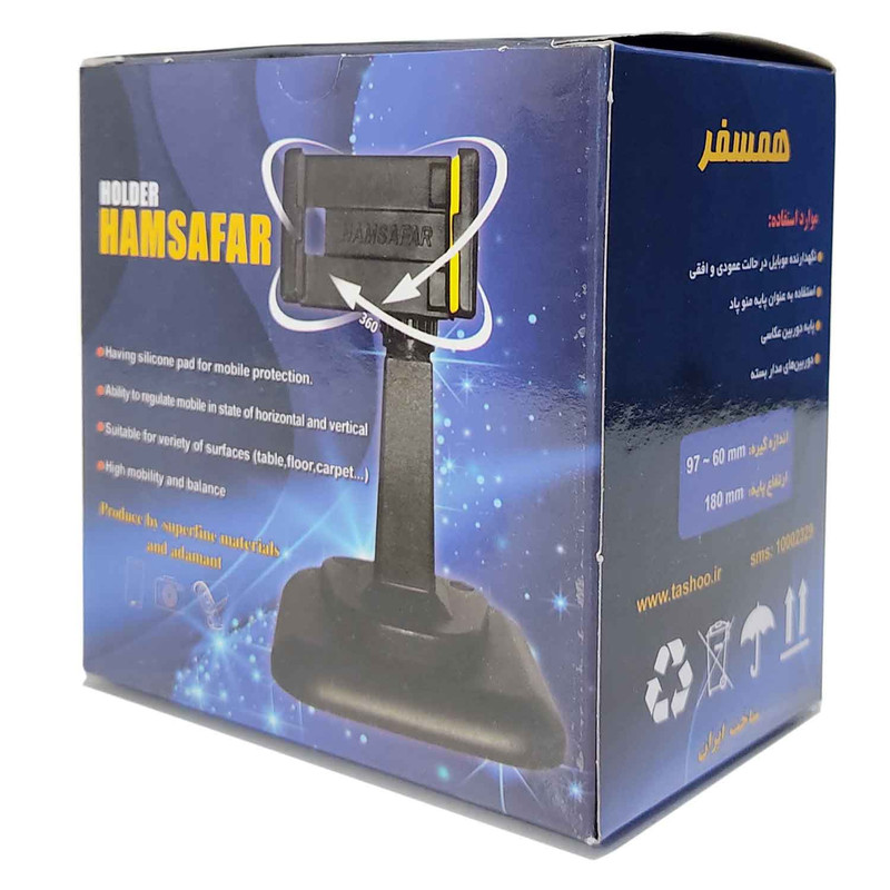 نگهدارنده رومیزی همسفر وسیله ای کاربری و مناسب موقع استفاده از گوشی موبایل میباشد و به دلیل استفاده از مواد درجه یک و کیفیت ساخت بالا و ضد ضربه بودن یک پایه موبایل منحصر به فرد محسوب میشود که میتوان از آن بدون نیاز به چسب یا مکنده برروی میز یا زمین یا فرش از آن استفاده کرد و وسیله ای مناسب برای تمامی اقشار جامعه محسوب میشود . نگهدارنده موبایل همسفر در منزل و هنگام آموزش مجازی دانش آموزان و دانشجویان ، محل کار در شرکت یا فروشگاهها و یا هنگام تدریس و یا حتی تماشای فیلم و سلفی گرفتن یک ابزار کاربردی محسوب میشود و تمامی نیاز شما را برطرف میکند . در زیر کفی این نگهدارنده از پدهای پی وی سی استفاده شده است که بر روی سطوح سیقلی نیز کارآمد باشد و هنگام کار کردن با گوشی تا حد امکان از حرکت پایه جلوگیری کند.