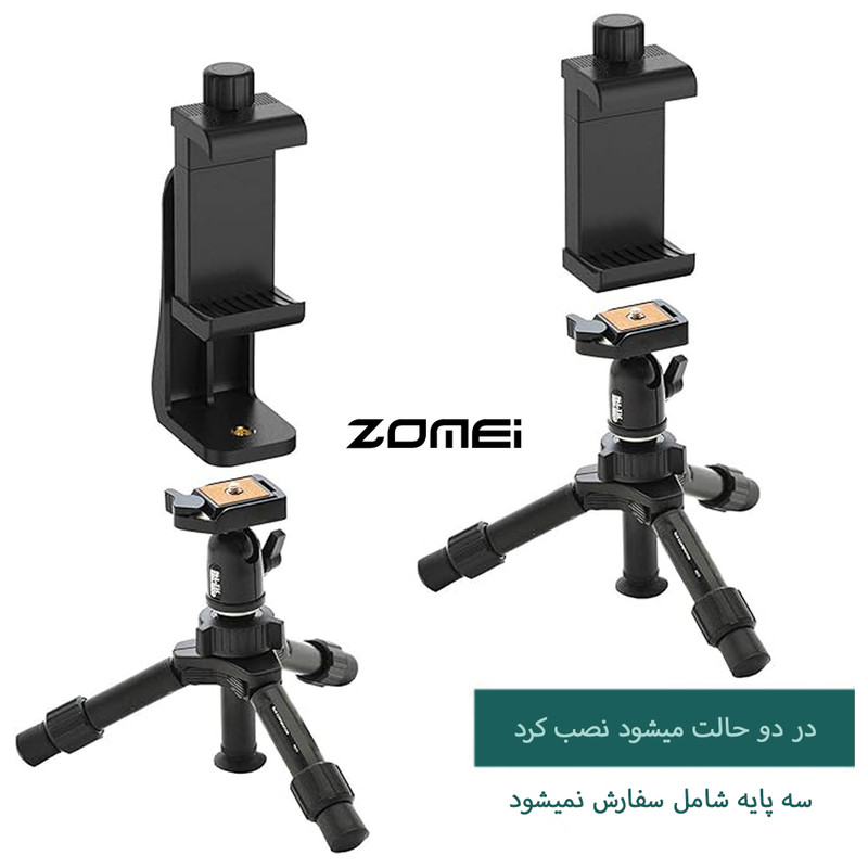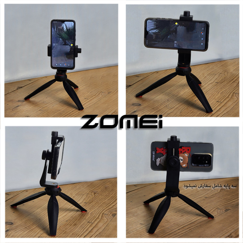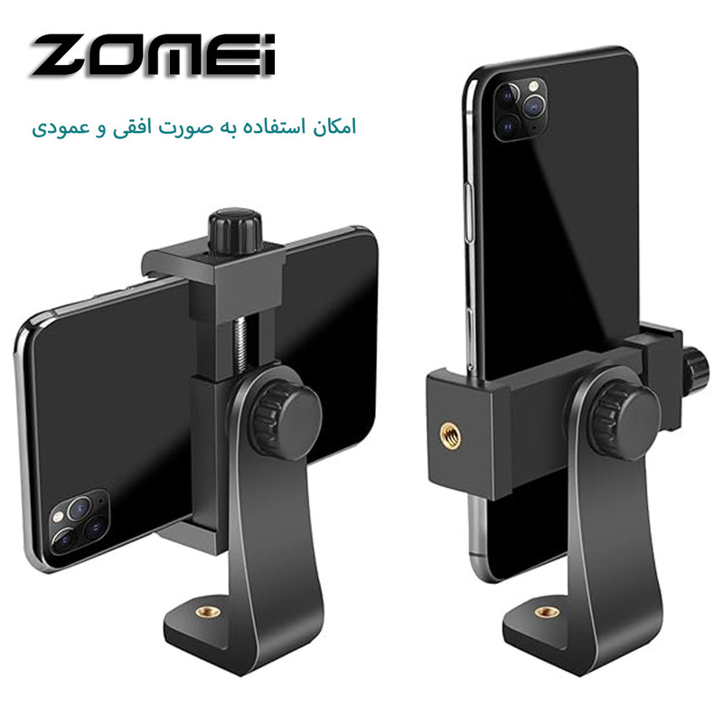 نگهدارنده گوشی موبایل از برند Zomei با قابلیت چرخش 360 درجه، عکاسی و فیلمبرداری افقی و عمودی یکی از بهترین گزینه ها برای نصب بر روی سه پایه عکاسی و سه پایه های موبایل است.یکی از ویژگی های خاص این محصول نسبت به سایر مدلها باز شدن به صورت پیچی است که بر خلاف مدلهای فنری هیچگونه فشاری به گوشی موبایل شما وارد نمی کند و به راحتی تنظیم می شود.پایه گوشی زومی را می توانید برای تولید محتوا ، عکاسی از محصولات ، عکس سلفی و ... استفاده کنید.ساختار پایه گوشی Zomei از پلاستیک فشرده ABS است و بسیار مستحکم و مقاوم است.مزیت این مدل نسبت به مدلهای مشابه بازار داشتن جای پیچ های فلزی است که از هرز شدن به مرور زمان جلوگیری می کند.بر روی پایه ال و همچنین نگهدارنده زومی جای پیچ استاندارد 1.4 اینچ قرار دارد که می توانید آن را بر روی کلیه تجهیزات با پیچ استاندارد 1.4 متصل کنید ، تجهیزاتی همچون سه پایه نور ، سه پایه دوربین ، تک پایه های عکاسی و ... . در داخل کالا لاستیک ضد لغزش قرار داده شده تا در حین تولید محتوا گوشی شما حرکتی نداشته باشد و همچنین به آن آسیبی وارد نشود.میزان باز شدن هولدر گوشی موبایل Zomei از 58 میلیمتر تا 104 میلیمتر است و مناسب برای کلیه گوشی های هوشمند بازار است.