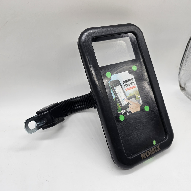 پایه نگهدارندهی رومیکس برای اکثر گوشیهای موبایل طراحی شده و وزن کمی دارد. این پایه به سادگی و با استفاده از یک گیره، روی فرمان دوچرخه و موتورسیکلت نصب میشود دارای بدنه ساخته شده از پلاستیک ABS و دارای طلق سخت که شما هیچ تفاوتی در تاچ گوشی احساس نخواهید کرد دارای ۴ فنر که باعث میشود گوشی های نازک هم در این هولدر قرار گیرد. این محصول علاوه بر اینکه گوشیتان را در برابر باران ضد آب میکند در حفاقت از گوشی در برابر سرقت نیز محافظت میکند و از ویژگیهای این پایه نگهدارنده میتوان به قابلیت چرخش 360 درجه آن اشاره کرد. این قابلیت شما را از امکان تماشای صفحهنمایش گوشی موبایل در زوایای مختلف برخوردار میکند و دقت داشته باشید برخلاف مدل های موجود در بازار شما در همگام استفاده از این هولدر میتوانید از دوربین اصلی و سلفی خود در هنگام رانندگی استفاده کنید و فیلم برداری کنید و در عکاسی سلفی هم بسیار کاربردی است. بنابراین دیگر نگران افتادن گوشی خود در سرعتهای بالا و یا در دستاندازها نباشد. این هولدر دارای درپوش در محل هندزفری و درگاه شارژ که شما میتوانید در زمان موتور سواری از هندزفری خود یا پاوربانک خود استفاده کنید و در زمانی که نیاز به استفاده از پورت های موبایلتان ندارید میتوانید آنرا ببندید و جلوگیری کنید از ورود آب پایه نگهدارنده برای استفاده در دوچرخهها کاربرد زیادی دارد و اگر هنگام دوچرخهسواری از تماسهای ویدیویی یا اپلیکیشنهای مسیریابی استفاده میکنید بهتر است گوشی موبایل خود را در این پایه قرار دهید مناسب گوشی هایی تا 6.4 اینچ .
