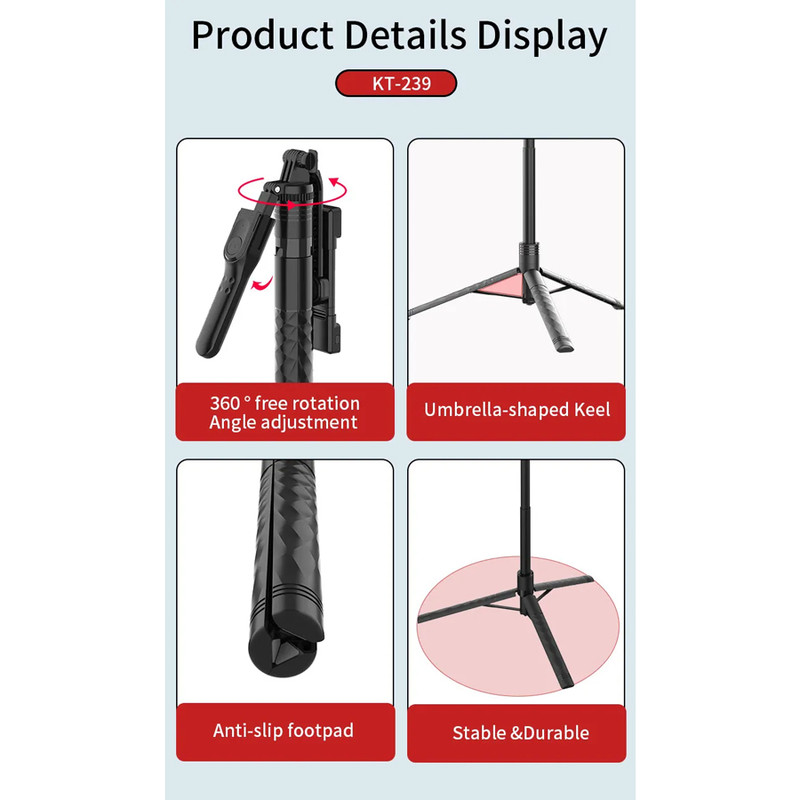 ثبات و پایداری: سه پایه دوربین جی ماری مدل KT-239 با ساختاری مستحکم از آلومینیوم و پایههای لاستیکی ضد لغزش، دوربینی امن و مطمئن برای شما در هر شرایطی فراهم میکند.