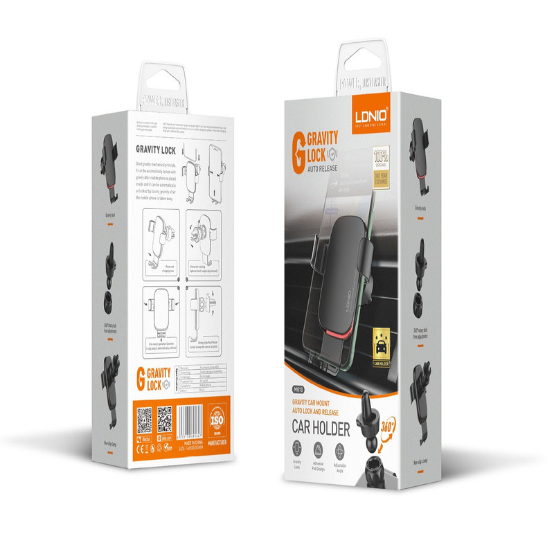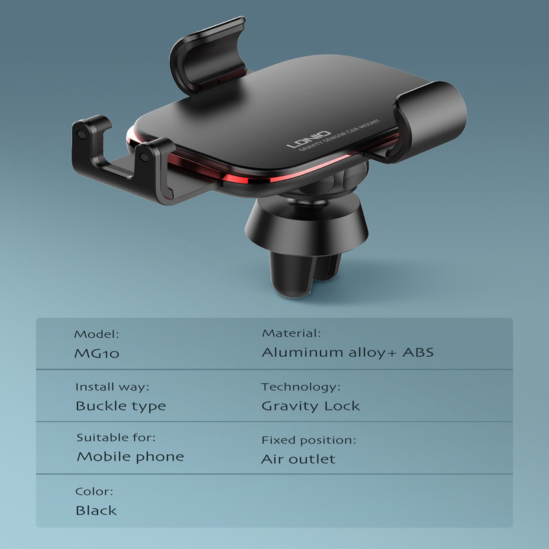 پایه نگهدارنده موبایل یک وسیله ضروری در خودرو و به ویژه در زمان رانندگی محسوب می شود. پایه نگهدارنده و هولدر موبایل، الدینیو مدل MG10 مناسب برای افرادی است که عادت دارند پشت فرمان گوشی خود را برای مسیریابی، پاسخگویی به تماس، پیام و … چک کنند و برای اغلب خودروها و رانندگان تاکسی های اینترنتی مانند اسنپ کاربردی است. این هولدر قابل نصب بر روی دریچه کولر بوده و به همین دلیل به هولدر دریچه ای معروف است. جنس آن از پلاستیک ABS و آلیاژ آلومینیوم ساخته شده که مقاوم در برابر ضربه و فشار بوده و با اغلب گوشی های دارای عرض 4 تا 6٫7 اینچ سازگار می باشد. Ldnio MG10 امکان چرخش 360 درجه جهت تنظیم زاویه مناسب برای صفحه نمایش موبایل دارد تا کاربر بتواند در زاویه دید مورد نظر خود به راحتی با آن کار کند. بر روی بدنه این محصول یک فضای خالی نیز برای درگاه شارژ گوشی، جهت شارژ راحت هنگام رانندگی تعبیه شده است.