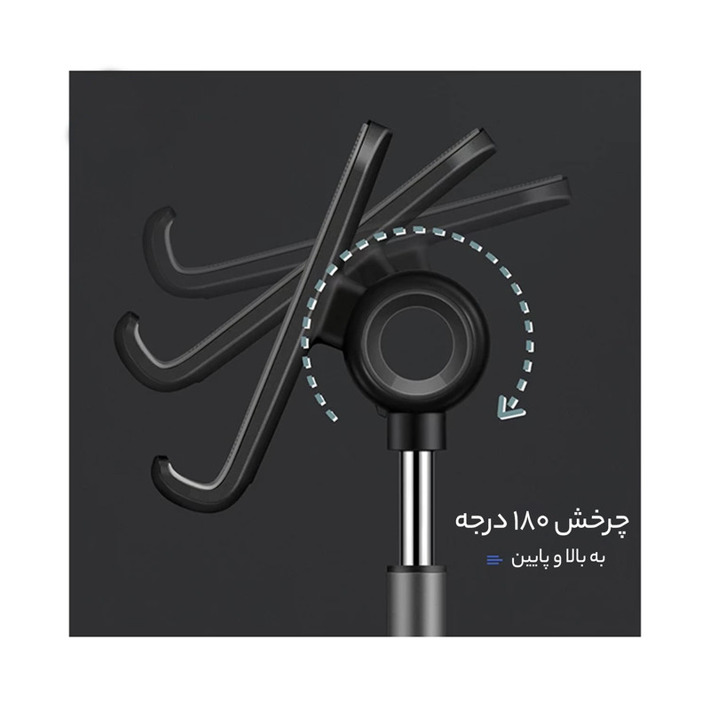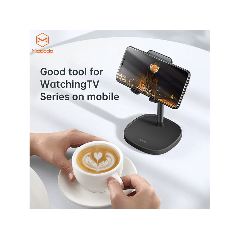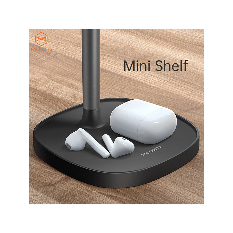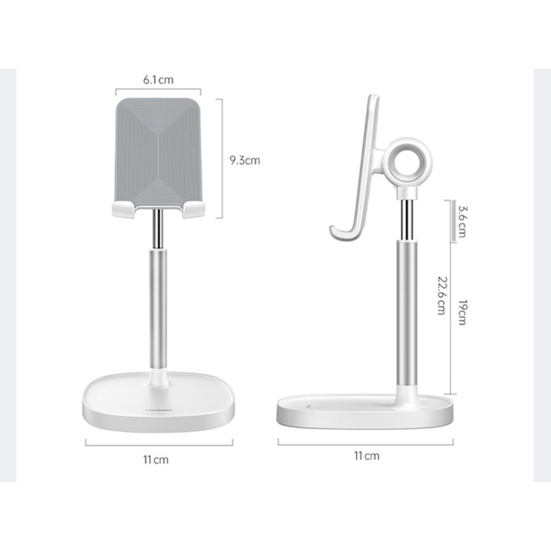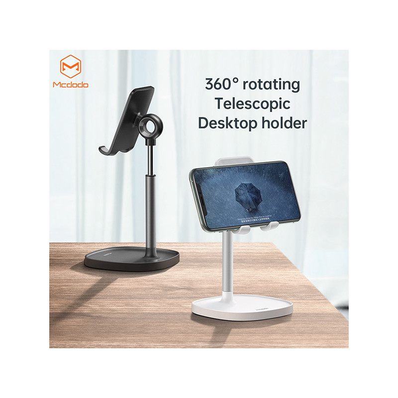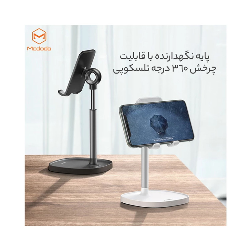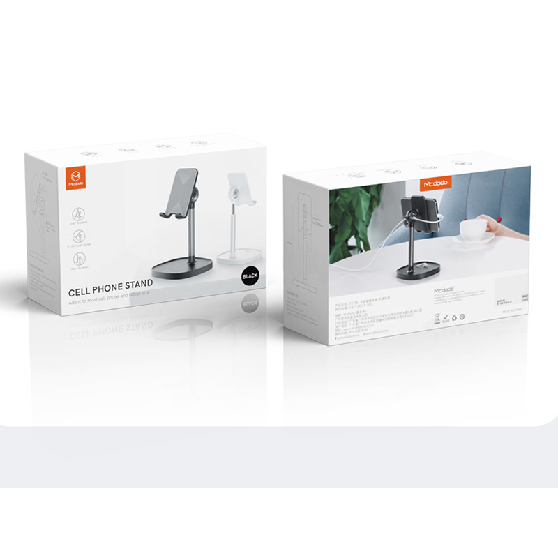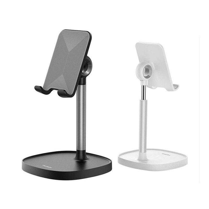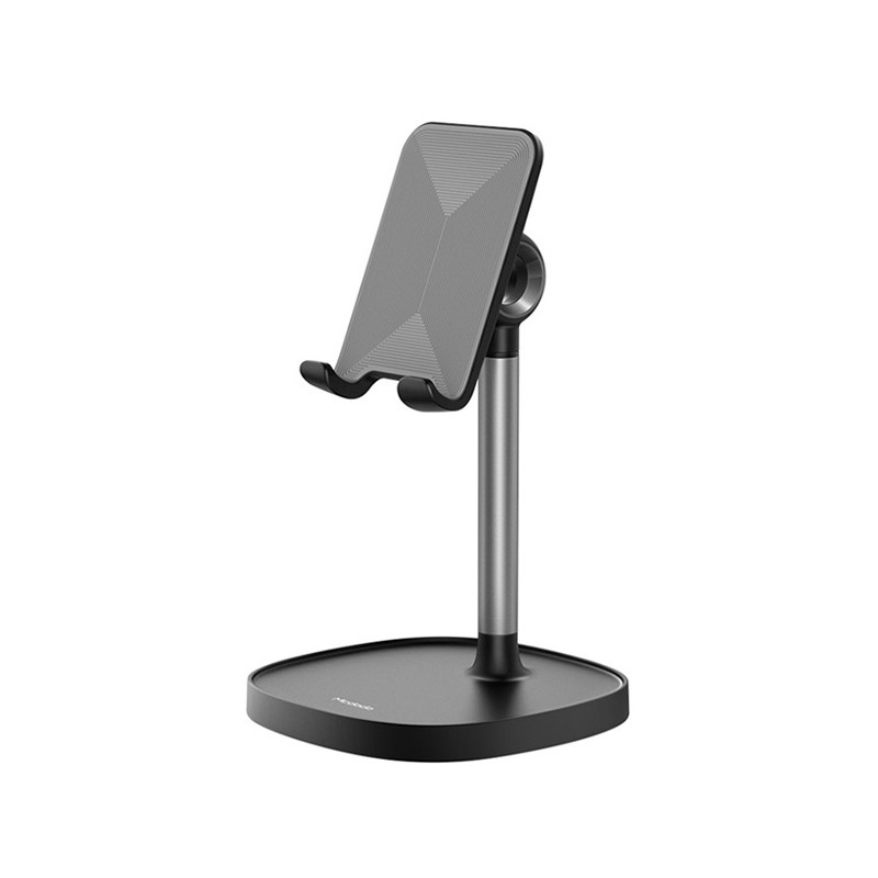 طراحی خاص و ویژه برای نگهدارنده گوشی و تبلت روی میز جهت مطالعه، تماشای تلویزیون، فیلم، سریال و غیره، مجهز به سری با قابلیت چرخش 180 درجه بصورت عمودی و 360 درجه بصورت افقی جهت تنظیم بهترین زاویه دید دلخواه، دارای پایه قابل تنظیم با افزایش ارتفاع تا 36 میلیمتر: حداقل ارتفاع 190 میلیمتر، حداکثر ارتفاع 226 میلیمتر، ساخته شده از آلیاژ آلومینیوم+سیلیکون، مقاوم در برابر ضربه، فشار و اکسید شدن، بهرهگیری از پدهای ضربه گیر سیلیکونی جهت جلوگیری از ایجاد خط و خش بر روی گوشی، دارای شیار در قسمت پشت و پایین هولدر جهت اتصال کابل شارژ به گوشی برای دست و پا گیر نبودن کابل، استفاده از قسمت فلزی در انتهای نگهدارنده جهت نگهداری وسایل کوچک مانند فلش، هدفون، کابل و غیره، دارای پایههای سیلیکونی جهت قرارگیری محکم و بدون لغزش بر روی سطوح صاف، سازگار با اکثر گوشیها و تبلتها، سبک با وزن 238 گرم است.
