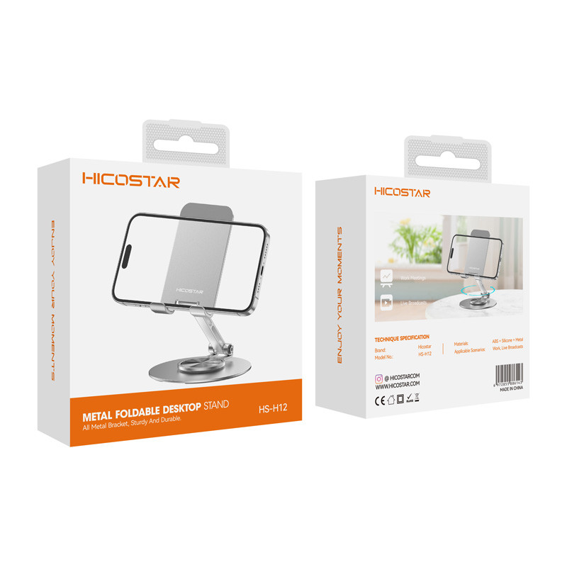 طراحی تاشو رومیزی به شما امکان میدهد پایه را به راحتی جمع کرده و در هر فضایی از ان استفاده کنید.، بدون اینکه فضای زیادی اشغال کند .HS-H12 به طور ویژه برای جلسات کاری ،کلاس های آنلاین و پخش زنده طراحی شده استو می تواند گوشی شما را در زاویه ای مناسب و ثابت نگه دارد.