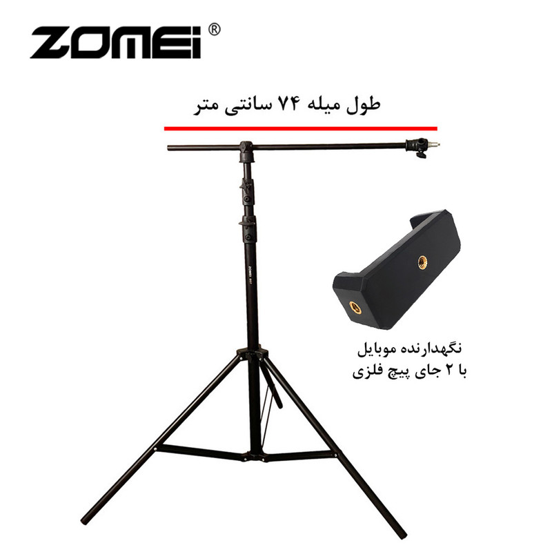 اگر شما هم جز آن دسته از افرادی هستید که با موبایل خود عکاسی و فیلمبرداری می کنید، می دانید که سه پایه موبایل چقدر مهم است. عکاسی و فیلمبرداری بدون لرزش دست می تواند حس بهتری را به ببینیده منتقل کند. سه پایه موبایل افقی به شما امکان می دهد تا با موبایل و از زاویه بالا عکاسی و فیلمبرداری کنید. به این ترتیب، بسیاری از عکس های تبلیغاتی و یا ویدیوهای آموزشی و آنباکسینگ ها از زاویه بالا و با کمک سه پایه موبایل افقی (سه پایه با قابلیت Tشدن) تهیه می شود. سه پایه موبایل زومی Stand Plus از جنس آلومینیوم بوده و با داشتن یک میله افقی، برای عکاسی و فیلمبرداری از بالا مناسب است.سه پایه موبایل افقی قابلیت چرخش 360 درجه هد، تنظیم ارتفاع و استفاد از موبایل در حالت عمودی و افقی را دارد. با استفاده از این ویژگی ها شما می توانید عکاسی و فیلمبرداری را از زوایای مختلف تجربه کنید. هولدر موبایل این سه پایه از 5.5 سانتی متر تا 8.5 سانتی متر قابلیت باز شدن دارد.یکی دیگر از ویژگی های سه پایه موبایل Zomei Stand Plusبا قابلیت T شدن، وجود بال هد و امکان زاویه دهی 360 درجه به موبایل و همچنین عکاسی و فیلمبرداری افقی و عمودی است.به راحتی انواع رینگ لایت های حرفه ای سنگین ، فلاش های استودیویی ، پنل های ال ای دی عکاسی و یا فیلمبرداری و ... را به حالت افقی و در زاویه بالا استفاده کنید.طول میله افقی زومی 74 سانتی متر است و می توانید نسبت به وزن تجهیزاتی که دارید آن را تنظیم کنید.حداکثر ارتفاع سه پایه T شو زومی 260 سانتی متر و بسیار مستحکم و قوی است.مزیت سه پایه افقی زومی نسبت به مدل های مشابه بازار قسمت پایین سه پایه است که بسیار بزرگتر از مدل های معمول است به همین دلیل از استحکام بالا و همچنین تحمل وزن بیشتری برخوردار است.سری سه پایه نور در این مدل متحرک است و شما می توانید آن را به حالت افقی و یا عمودی نصب کنید و همچنین دارای پیچ استاندارد 1.4 و 3.8 اینچ برای پیچ کردن انواع تجهیزات است. وزن سه پایه به تنهایی 3000 گرم است.