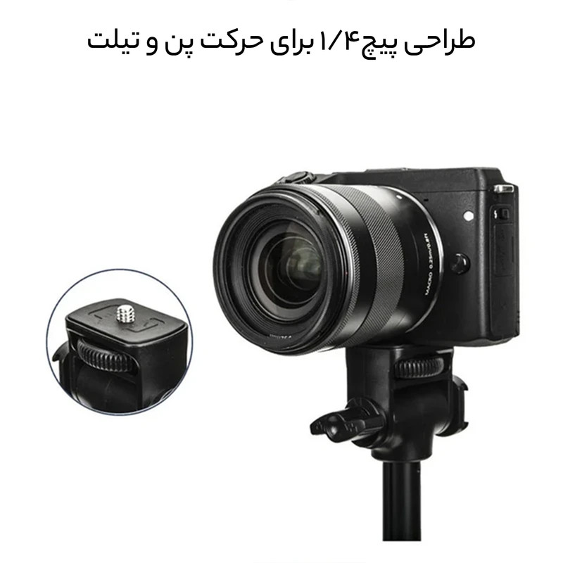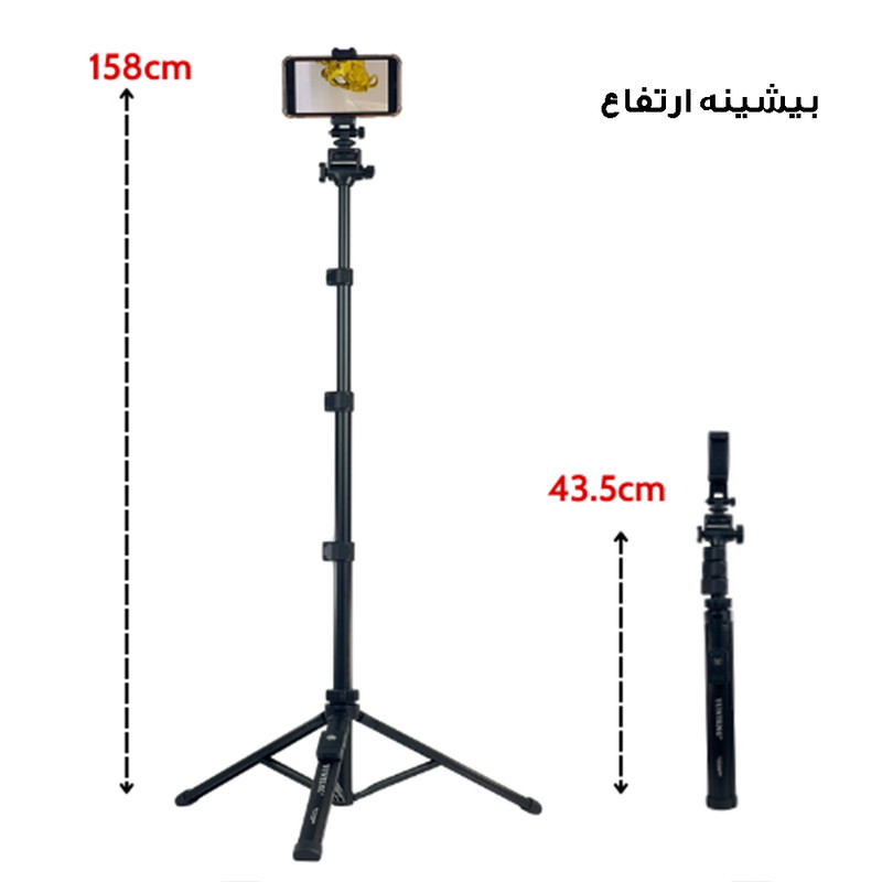 پایه نگهدارنده ی گوشی و مونوپاد یانتنگ مدل VCT-91666 ، این پایه مونوپاد و 3پایه نگهدارنده ی گوشی دارای نگهدارنده دوربین و تلفن همراه می باشد که قابل تنظیم و جابجایی است . نگهدارنده این سه پایه با گوشیهای هوشمند اندروید و IOS سازگار است. طول این سه پایه از43 سانتی متر به 158 سانتی متر با استفاده از قفل هایی که دارد می توانید تنظیم کنید. دارای ریموت کنترل برای دسترسی آسان می باشد.