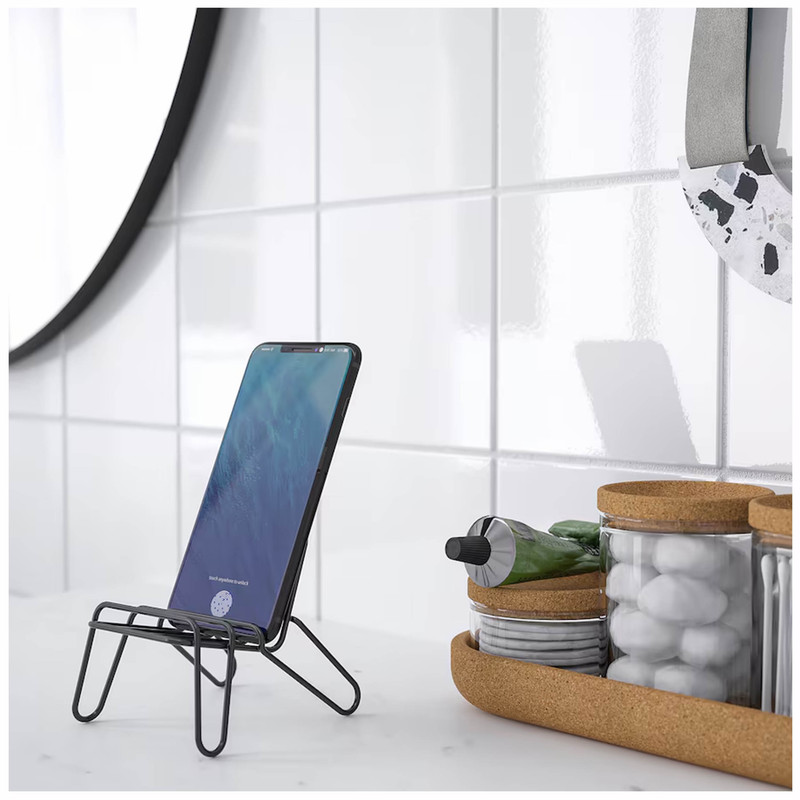 استند یا نگهدارنده موبایل یا مینی تبلت برند معروف ایکیا ( IKEA ) از جنس فلز بوده است . رنگ حرفه ای کوره ای دارد و قابل شستشو است . برند سوئدی ایکیا اورجینال و وارداتی است ابعاد100در100در100 میلی متر است