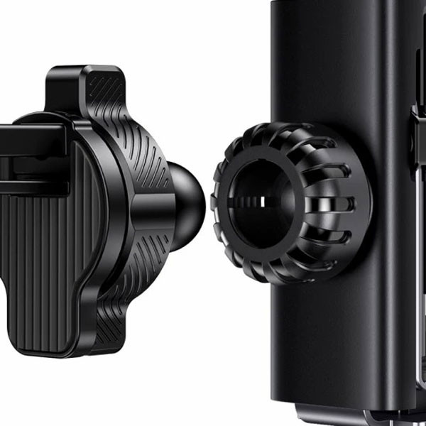 همچنین داخل گیره این هولدر یک قسمت توپی شکل وجود دارد که به صورت 360 درجه می چرخد و می توانید به راحتی زاویه دیدتان روی گوشی را تنظیم نمایید.
