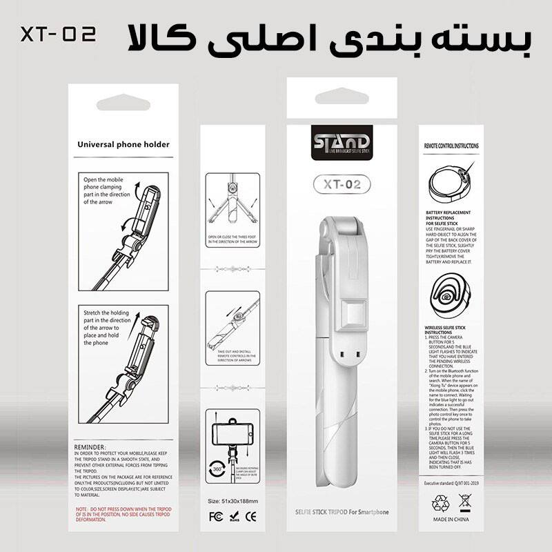 پایهی مونوپاد XT-02P با طول حداکثر 100سانتیمتر، ابزاری مناسب برای عکاسی سلفی با گوشیهای موبایل اندروید و آیفون است. این محصول بدنهای از جنس فلزی دارد. کمترین طول هم در حالتی که تمام تکهها جمع شدهاند، 20 سانتیمتر است. این محصول به لطف گریپ پلاستیکی، بهراحتی در دست نگهداشته و کنترل میشود. قسمت نگهدارندهی گوشی، به پایهای متصل شده که از قابلیت چرخش 360 درجه و خموراستشدن برای تنظیم زاویهی دلخواه برخوردار است. افرادی که به گرفتن عکس سلفی تمایلی ندارند، میتوانند آن را در حالت سه پایه قرار دهند و به کمک ریموتکنترلی که روی بدنهی مونوپاد قرار گرفته و قابل جداشدن از بدنهی مونوپاد است، اقدام به عکاسی کنند. ریموت کنترل آن با گوشیهای اندروید نسخهی 4.3 و iOS نسخهی 6.0 به بالا سازگار است.