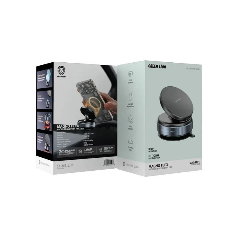 هولدر مکش خلأ مغناطیسی Green Lion Magno Flex یک نگهدارنده قدرتمند و چندمنظوره است که به شما امکان میدهد دستگاههای خود را با اطمینان و ثبات نگه دارید. این پایه از مواد مقاوم ABS، PC و TPU ساخته شده و برای استفاده روزمره طراحی شده است. با 10 آهنربای قدرتمند N52، این نگهدارنده نیروی مغناطیسی تقویتشدهای را ارائه میدهد و دارای قدرت جذب 1.83 کیلوگرم است.مکنده قوی آن نیز با فشار جذب قابل تنظیم بین 18 تا 65 کیلوپاسکال، پایداری لازم را بر روی سطوح مختلف فراهم میکند.پایه چرخان 360 درجه به شما این امکان را میدهد که زاویه دید دستگاه خود را بهراحتی تنظیم کنید. علاوه بر این، نصب آسان این پایه باعث میشود که بتوانید از آن در ماشین، خانه یا محل کار استفاده کنید.با ساختاری محکم و عملکردی انعطافپذیر، پایه مکش خلأ مغناطیسی Green Lion Magno Flex دستگاه شما را در هر موقعیتی ایمن و در دسترس نگه میدارد.