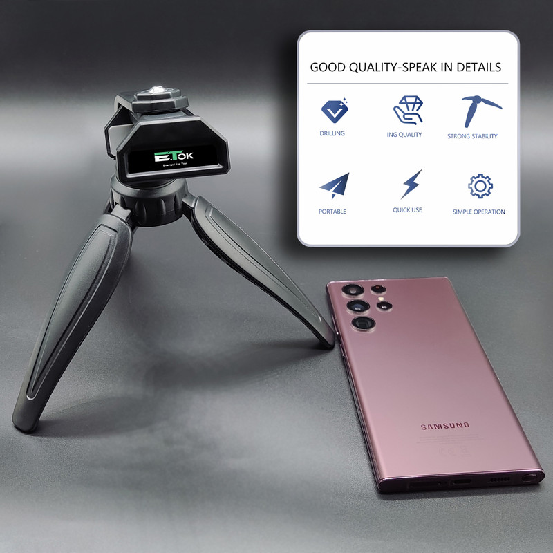 این استند ایتوک یک سه پایه رومیزی و یک تک پایه دستی بسیار مناسب برای دوربین های عکاسی و گوشی های موبایل می باشد . جنس بدنه ی این محصول ترکیب خوبی از پلاستیک ABS و فلز با روکش کروم می باشد که در قسمت هایی از این محصول قطعاتی از جنس سیلیکون نیز مشاهده می کنید که برای جلوگیری از آسیب به بدنه ی دوربین عکاسی و موبایل کاربران , طراحی شده است .