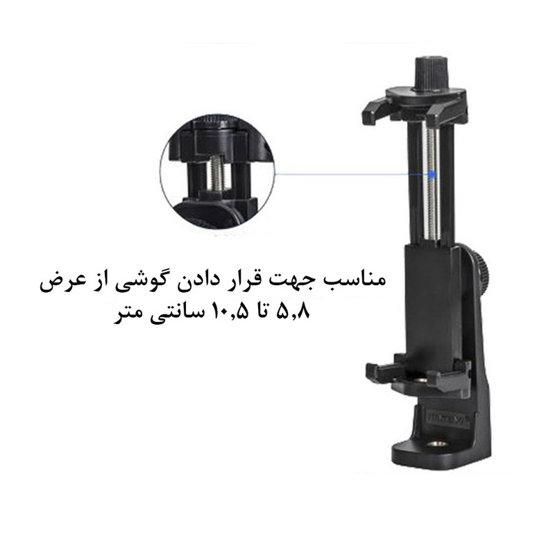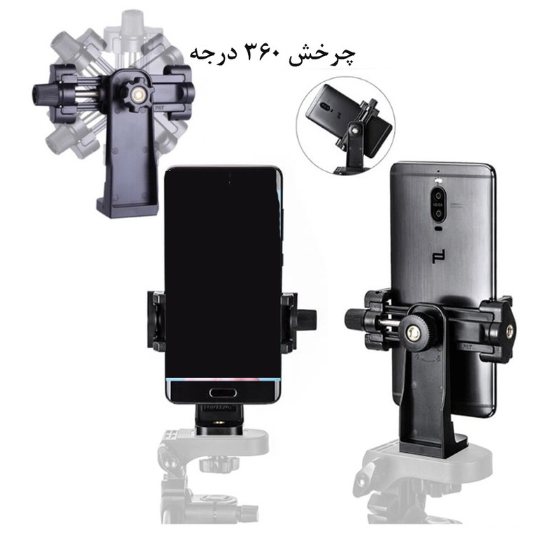 انواع تلفن همراه از عرض 5.5 تا 10.5 سانتی متر / مناسب نصب بر روی کلیه سه پایه های عکاسی ، سه پایه های فیلمبرداری ، تک پایه عکاسی و کلیه پیچ های استاندارد 1.4 اینچ /