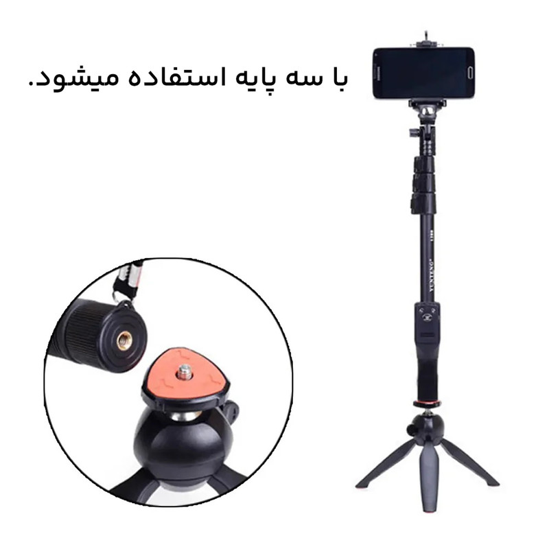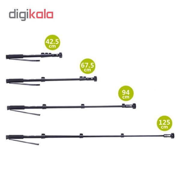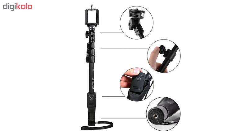 پایهی مونوپاد «یانتنگ» مدل «YT-1288» با طول حداکثر 125سانتیمتر، ابزاری مناسب برای عکاسی سلفی است. این محصول بدنهای از جنس آلومینیوم دارد که از چهار تکهی تلسکوپی تشکیل شده است. این تکهها بهوسیلهی گیرههای پلاستیکی به هم محکم میشوند و پس از بازکردن همهی تکهها، طول مونوپاد به 125 سانتیمتر میرسد. کمترین طول هم در حالتی که تمام تکهها جمع شدهاند، 42.5 سانتیمتر است. این محصول به لطف گریپ لاستیکی دندانهدارش، بهراحتی در دست نگهداشته و کنترل میشود. قسمت نگهدارندهی گوشی، به پایهای متصل شده که از قابلیت چرخش 360 درجه و خموراستشدن برای تنظیم زاویهی دلخواه برخوردار است. . افرادی که به گرفتن عکس سلفی تمایلی ندارند، میتوانند آن را روی سهپایهی یانتنگ قرار دهند و به کمک ریموتکنترلی که روی بدنهی مونوپاد قرار گرفته و قابل جداشدن از بدنهی مونوپاد است، اقدام به عکاسی کنند. ریموتکنترل این محصول دارای دکمههایی برای زوم، خاموش و روشن کردن و دکمهی شاتر است.