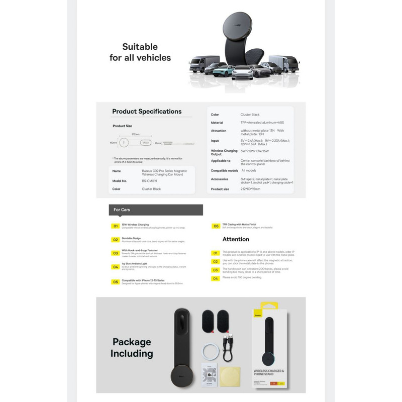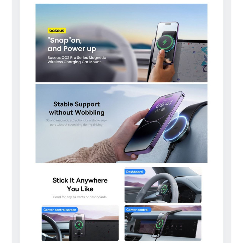 هنگام رانندگی از ناوبری راحت لذت ببرید. پایه بیسوس C02 Pro مدل BS-CM019 دارای طراحی جمع و جور است و روی دید تأثیری ندارد. قابلیت تنظیم را ارائه می دهد و از مواد بادوام ساخته شده است. علاوه بر این، به شما این امکان را می دهد که آیفون 14/13/12 خود را به صورت بی سیم شارژ کنید و آن را روی داشبورد یا کنترل پنل خود نصب کنید. شما همچنین لوازم جانبی را برای کمک به شما در نصب پایه پیدا خواهید کرد.
