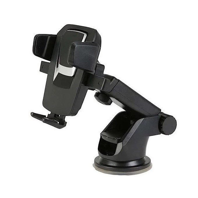 این استند خودرو تشکیل شده یک پایه نگهدارنده که توسط یک چسبونک سیلیکونی قوی به داشبورد و یا شیشه ماشین متصل و به لطف پایه و بازوی تلسکوپی جهت تنظیم ارتفاع و طول دسته که میتوانید فاصله مابین خودتان و گوشی را تنظیم کنید. این بازوی متحرک توسط پیچ و بست های خود میتواند 270 درجه بصورت بالا و پایین شود و حتی خود براکت دارای یک توپک قابل چرخش 360 درجه که میتوانید گوشی خود را بصورت افقی یا عمودی بچرخانید. براکت توسط دو گیره محکم و فنر دار براحتی باز و بسته میشود و می توانید آنرا بصورت کشویی باز کرده و مناسب تلفن همراه های با پهنای 60 تا 90 میلی متری ( سایز 2.5 تا 3.5 اینچ) است.