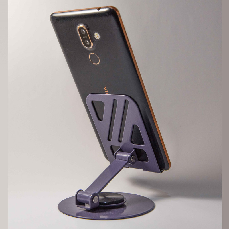 هولدر یا پایه رومیزی موبایل برای نگه داشتن تلفن همراه یا تبلت شما به طور ایمن و در موقعیتی مناسب بر روی میز یا سطح صاف دیگر طراحی شده است. جنس این پایه از فلز و رنگ آن از نوع کوره ای انتخاب شده تا دوام و استحکام بالایی داشته باشد . از ویژگیهای مهم این هولدر چرخش 360 درجه پایه ساچمه ای ، قابل تنظیم بودن زاویه پایه نگه دارنده ، ضد لغزش بودن پایه و همچنین ایستایی مناسب آن است . شما این امکان را دارید که زاویه دید و ارتفاع دستگاه خود را مطابق با نیاز خود تنظیم کنید. این پایهها برای استفاده در خانه، محل کار یا هر جای دیگری که نیاز به استفاده از دستگاه خود به صورت هندزفری دارید، ایدهآل هستند.